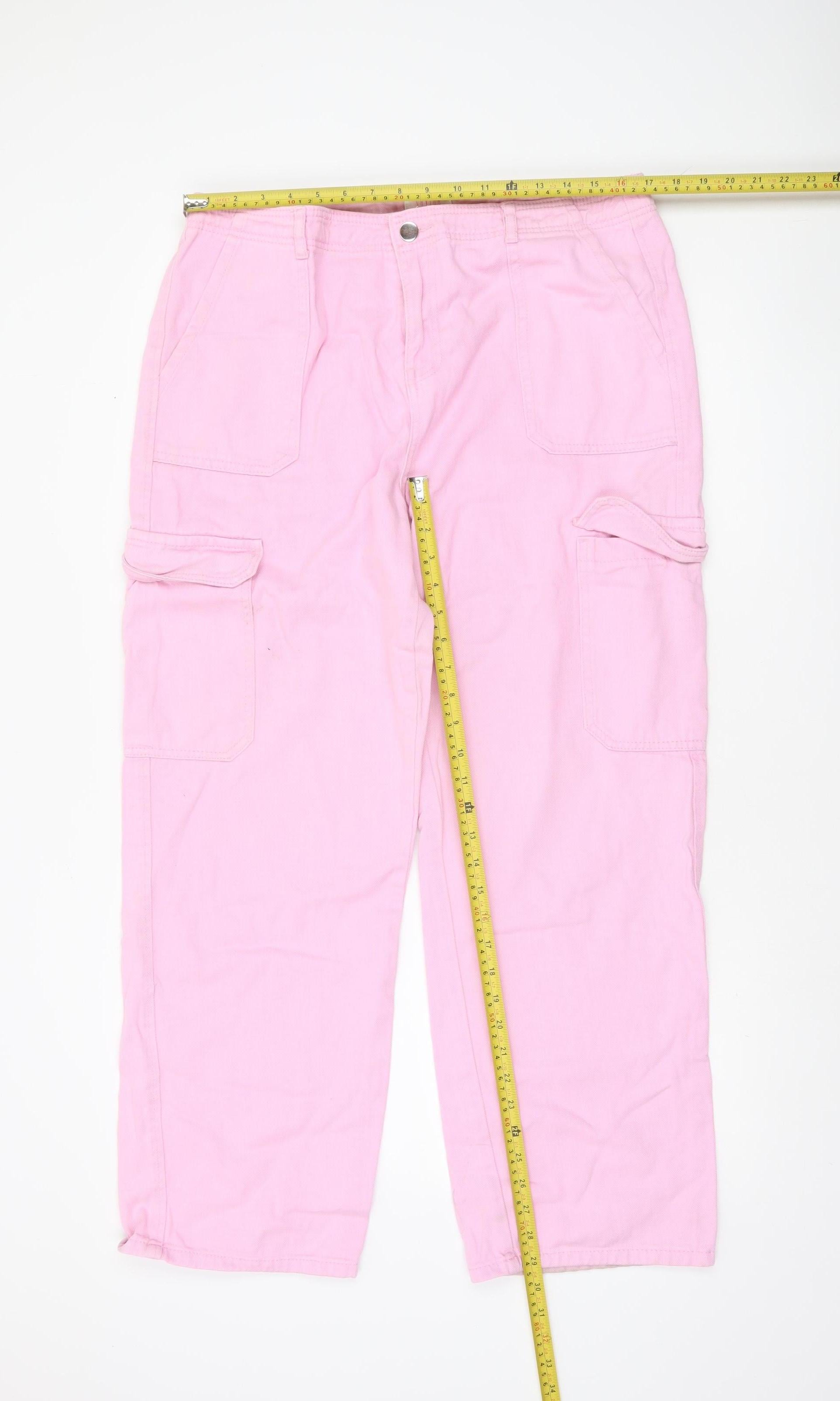 Women’s Pink Cotton Cargo Jeans Size 16 Straight Leg