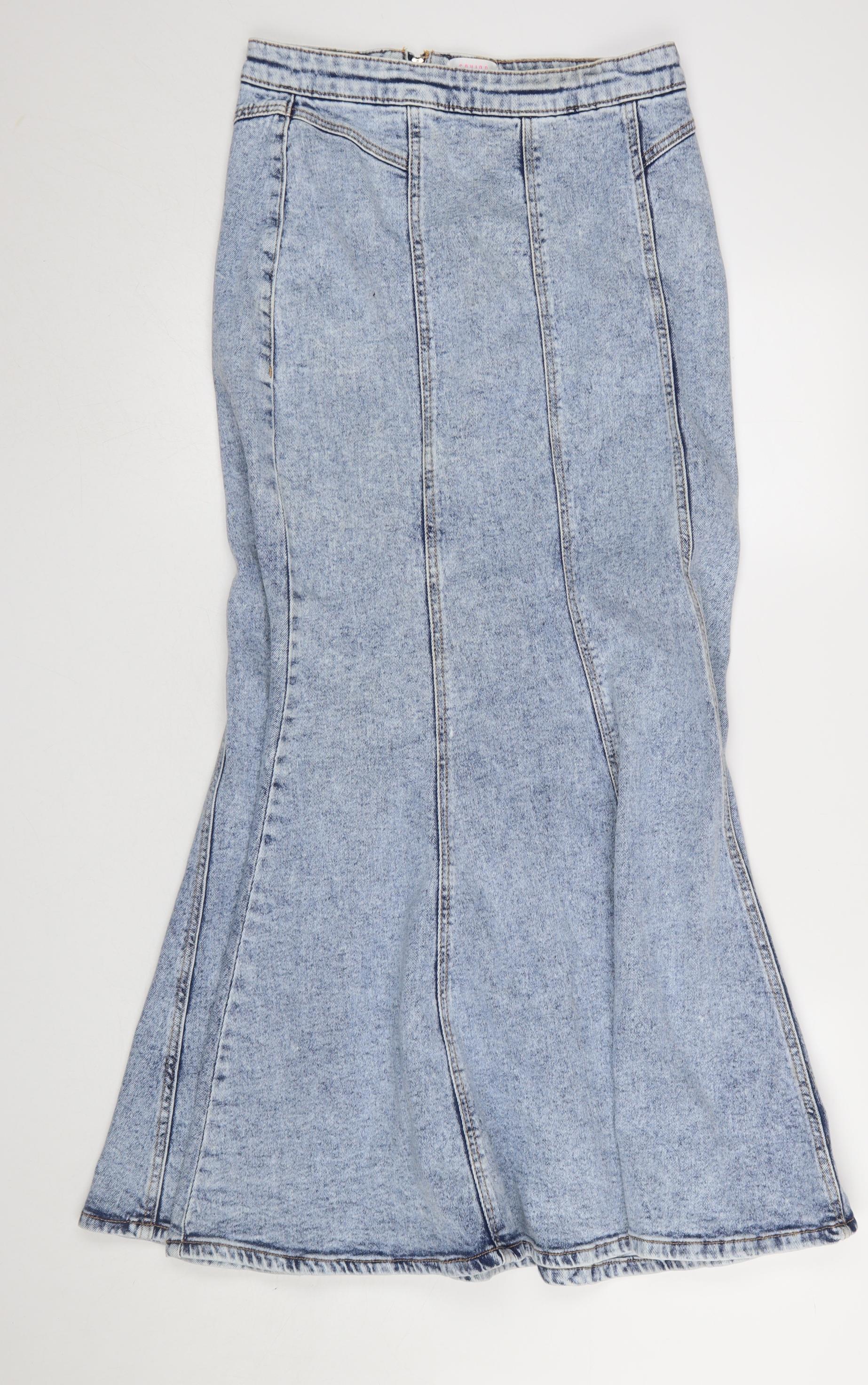 Step into effortless style with this stunning Savida women's flared denim midi skirt, perfect for a chic and casual look that transitions seamlessly through the seasons. Crafted from a premium blend of 99% cotton and 1% elastane, this skirt offers a comfortable fit with just the right amount of stretch, ensuring ease of movement and all-day wearability. The soft, lightweight denim fabric brings a timeless appeal that pairs beautifully with a variety of tops, from crisp white shirts to relaxed tees. The skirt features a flattering flare silhouette that enhances the natural shape, while the mid-rise waistband provides a classic yet modern fit. The subtle seam detailing elongates the figure and adds structure to the design. Completed with a secure zip closure, this midi-length skirt falls gracefully below the knee, making it a versatile and elegant option for both everyday wear and smart-casual occasions. Perfect for spring, summer, and autumn, this Savida denim skirt can be dressed up with heels and a blouse or kept relaxed with trainers and a tucked-in t-shirt. The quality cotton composition ensures breathability, while the gentle elastane blend allows for comfortable wear throughout the day. With its effortless design and durable construction, this skirt is an ideal choice for women who appreciate both style and practicality. In excellent pre-loved condition, this denim skirt shows minimal signs of wear and no visible flaws, ready to add a touch of casual sophistication to your wardrobe. Whether for weekend outings, brunch with friends, or casual office days, this Savida flared skirt delivers timeless charm and easy styling in one versatile piece.