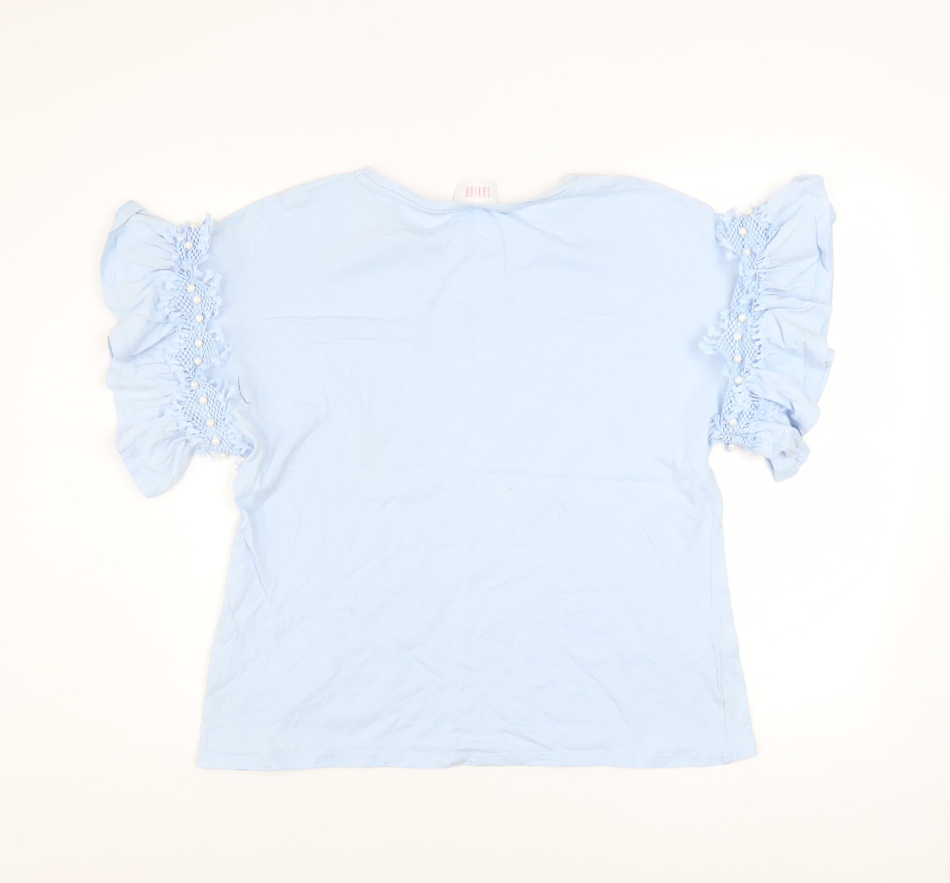 Women's Blue Ruffle Sleeve Cotton T-Shirt Size 14