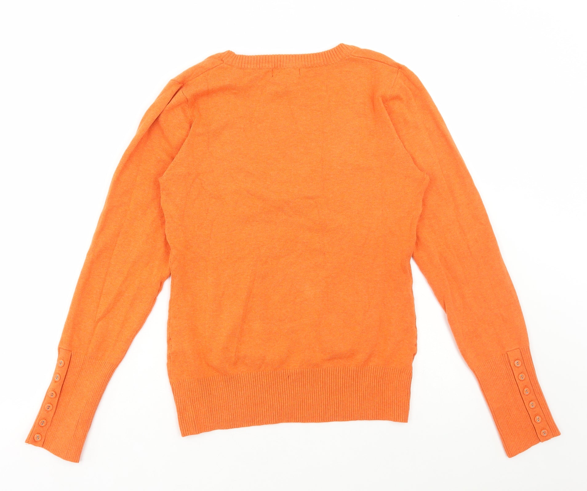Womens Orange Scoop Neck Cotton Pullover Jumper Size 14
