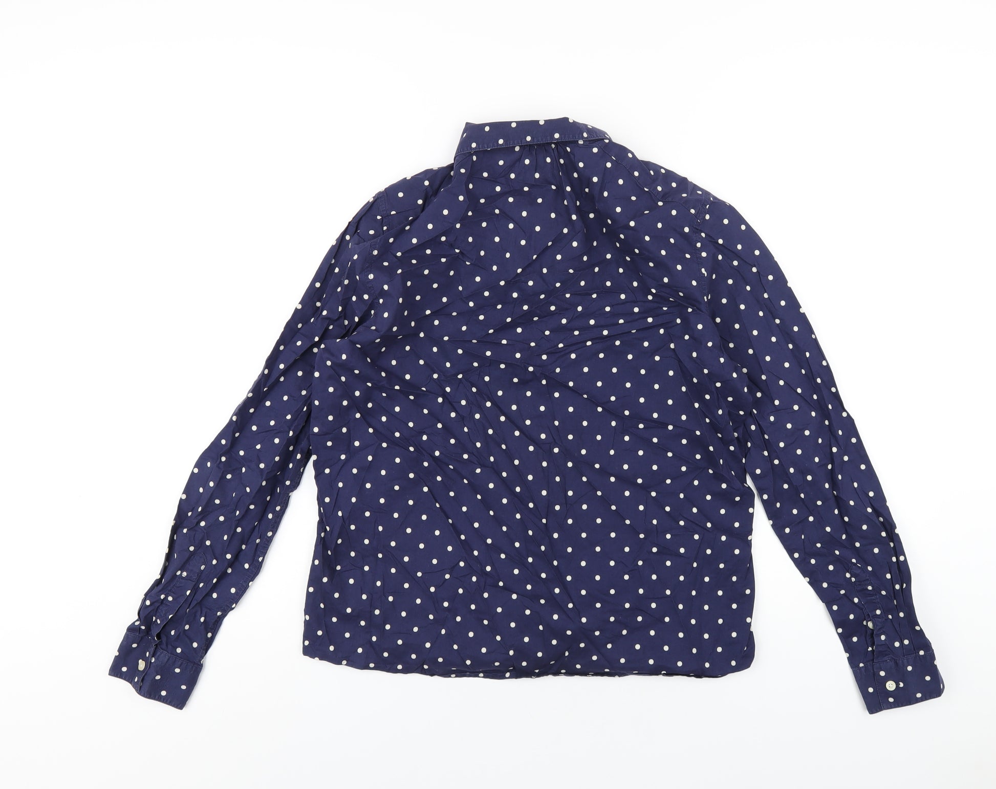 Womens Blue Polka Dot Cotton Basic Button-Up Size 14 Collared