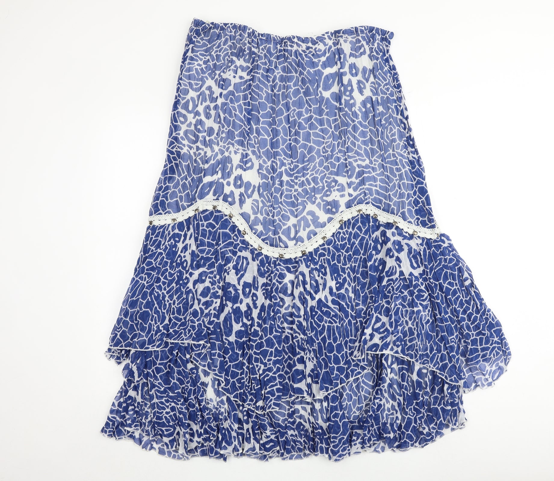 Womens Blue Geometric Polyester Swing Skirt Size 34 in