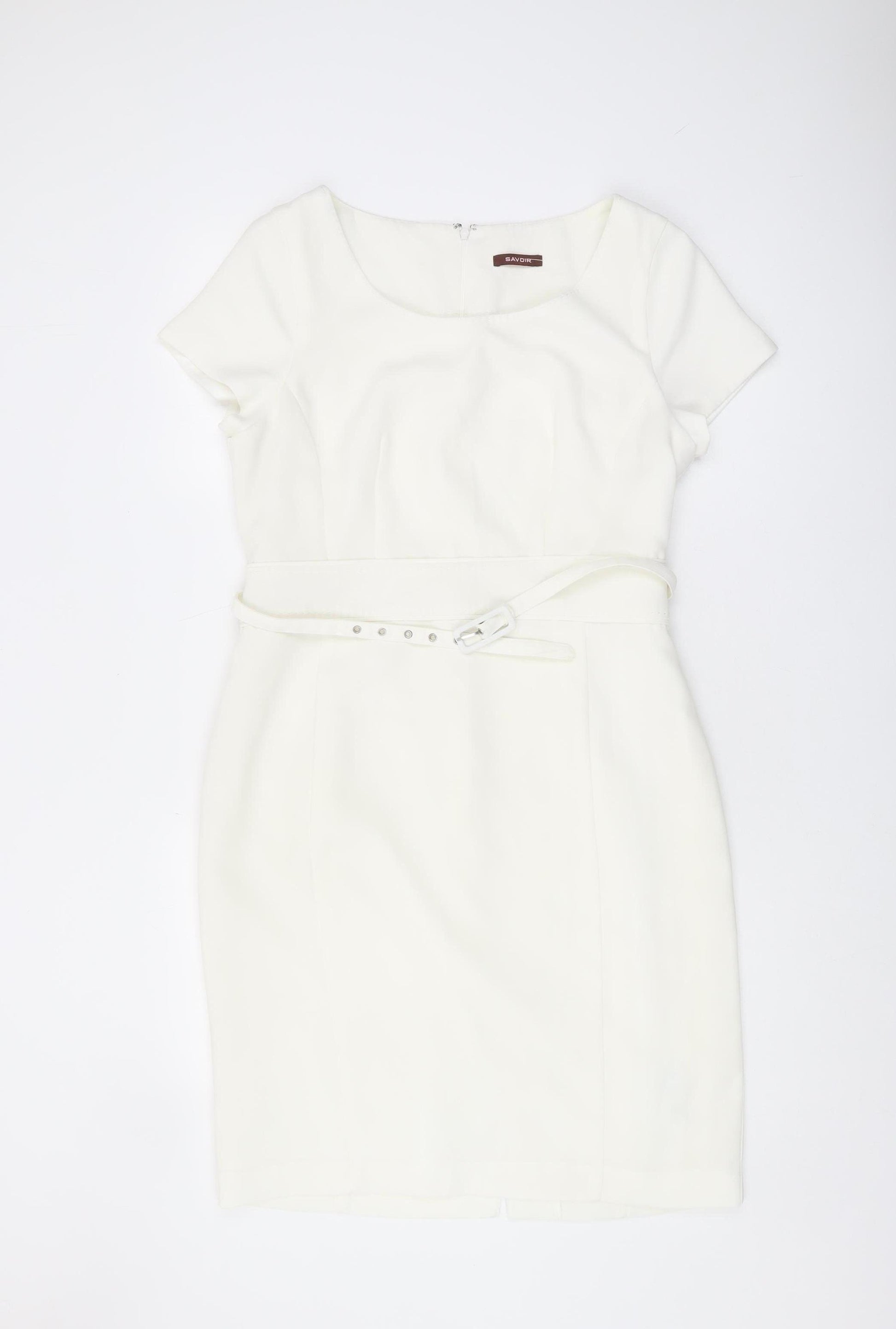 Elevate your wardrobe with this versatile women's ivory sheath dress by Savoir. Perfect for both business settings and casual outings, this knee-length dress offers a sophisticated yet comfortable look. Crafted from high-quality woven polyester, it ensures a flattering fit with lasting durability. The dress features a classic scoop neckline and is designed with short sleeves for versatility across seasons. The elegant belted accent not only enhances the sheath silhouette but also provides added style and definition. Complete with a secure zip closure, this dress maintains a sleek and polished appearance. Ideal for spring and summer, its timeless ivory colour pairs beautifully with a range of accessories. Whether you're heading to the office or meeting friends for a casual brunch, this dress delivers style and comfort in one chic package. Don't miss out on this essential addition to your collection.