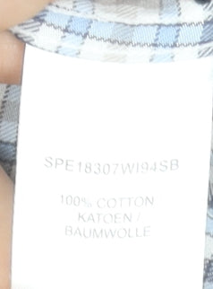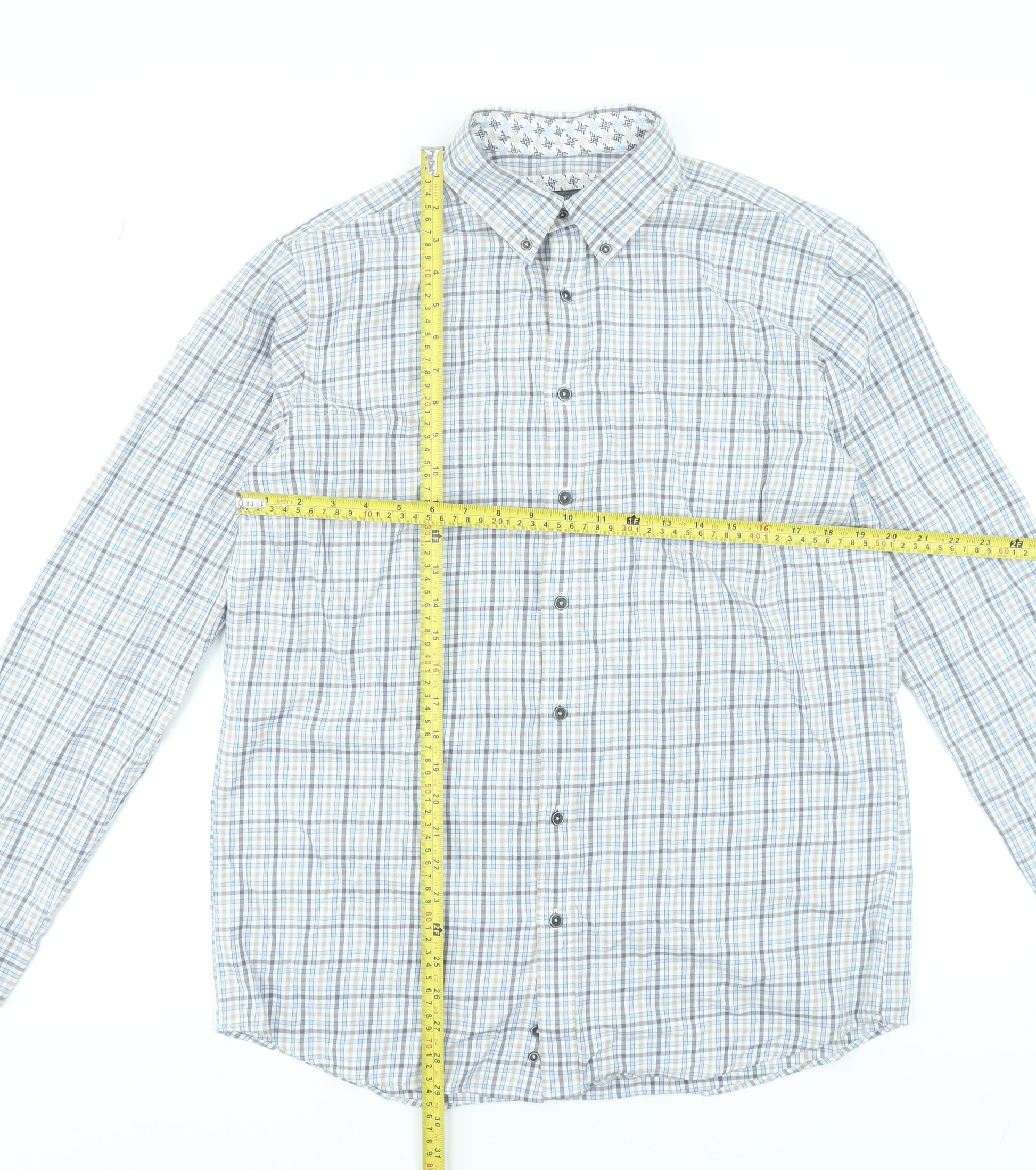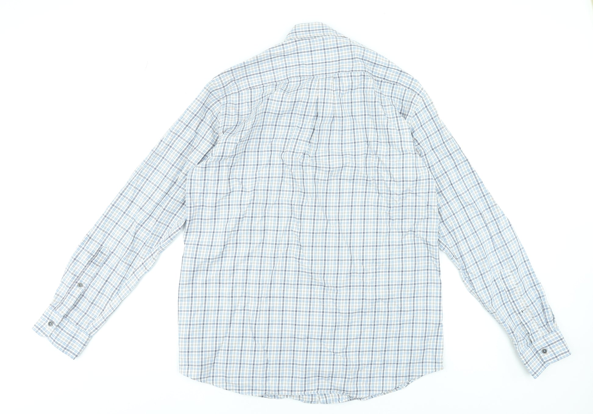 Elevate your smart-casual wardrobe with this stylish Scotland Blue men’s long sleeve dress shirt. Crafted from 100% pure cotton, it offers breathable comfort and a lightweight feel perfect for all-day wear. The woven check pattern in soft shades of blue and white gives it a classic yet contemporary edge, making it a versatile piece for both casual gatherings and semi-formal occasions. Featuring a smart button-down collar, full button closure, and barrel cuffs, this shirt delivers a polished and refined look. The collared neckline and regular fit ensure ease of movement and a flattering silhouette suitable for most body types. Whether styled with jeans for a relaxed ensemble or paired with tailored trousers for a more formal appeal, this shirt transitions effortlessly from day to evening. The high-quality cotton construction not only feels soft against the skin but also provides durability and easy care, keeping its crisp finish after multiple washes. In very good pre-owned condition with only light creasing from storage, it shows minimal signs of wear and remains ready to wear. Ideal for business-casual settings, everyday outings, or smart weekend wear, this Scotland Blue shirt combines timeless design with superior craftsmanship for the discerning gentleman. Its subtle check design adds understated sophistication to any outfit, making it a must-have addition to your collection. Perfect for work, dinner engagements, or weekend social events, this shirt embodies both comfort and style. Refresh your wardrobe with this well-made piece that balances elegance and practicality, maintaining a refined presence wherever you go. A great choice for men who appreciate classic fashion with modern ease, this shirt provides excellent value and lasting quality at an affordable price.