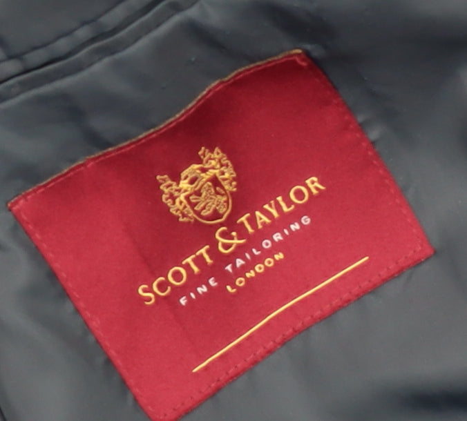 Enhance your wardrobe with this Scott & Taylor Men's Blazer, perfect for business meetings or formal occasions. Designed in a classic blue hue, this blazer exudes sophistication and style. The single-breasted design with a notch lapel and two-button front ensures a sleek and timeless appearance. Crafted with a regular fit, it offers both comfort and a structured silhouette, making it ideal for a variety of body types. Made from high-quality polyester and viscose, the blazer is both durable and comfortable, featuring a double-vented back for ease of movement. The jacket includes three-button sleeves and inner pockets, providing convenience and functionality for the modern man. Although pre-owned, this blazer is in excellent condition with only minor signs of wear, offering an upscale look without the retail price tag. Elevate your formal attire with this versatile piece and make a lasting impression at any event.