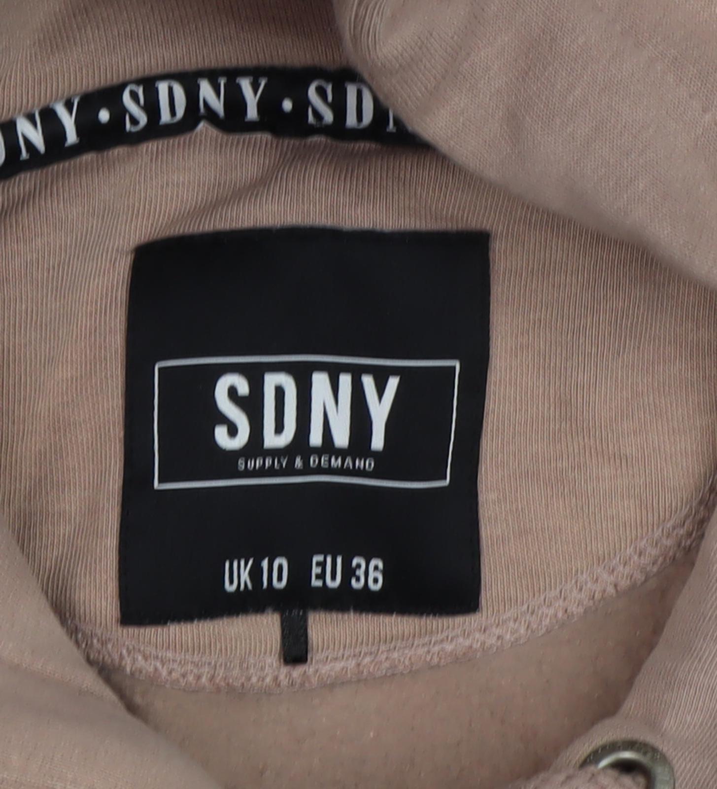 Discover comfort and style with this SDNY women's brown hoodie. Crafted for casual wear, it fits seamlessly into any wardrobe. This hoodie is a pullover style with a practical drawstring closure and a hooded neckline, ensuring both warmth and style. Made from a soft fleece fabric comprising mainly of cotton and polyester, it promises a cozy feel and durability. The long sleeves and regular fit make it perfect for layering in all seasons. Although slightly worn with some small marks, it remains in very good condition, ideal for casual occasions or everyday outings. Embrace this hoodie’s versatility for a bargain price.