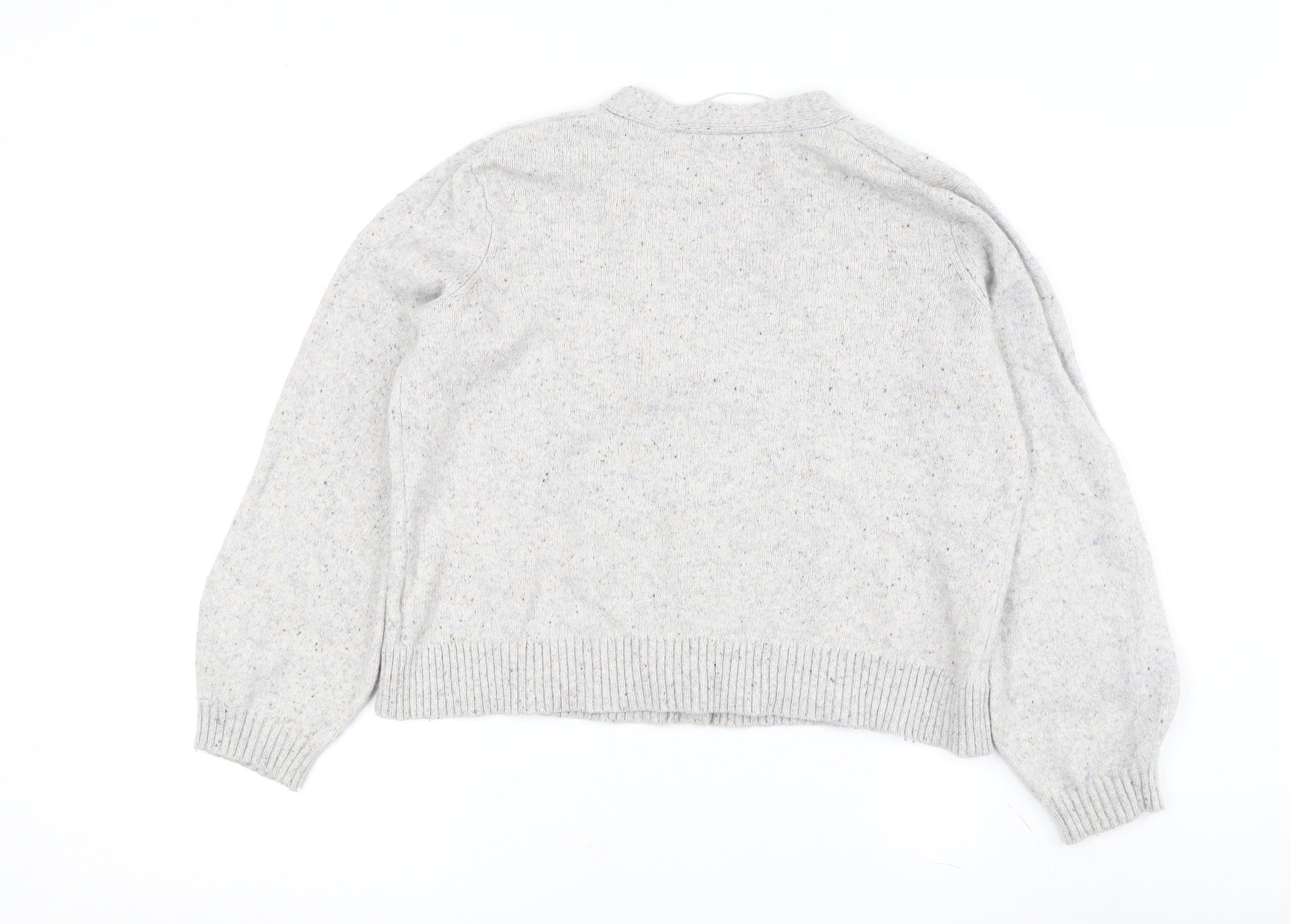 Elevate your wardrobe with this elegant Seasalt Cornwall cardigan, an exquisite blend of comfort and style. Designed for women, this grey cardigan is crafted from a luxe combination of cotton and wool, ensuring both warmth and breathability. Its regular knit texture and long sleeves make it an ideal choice for all seasons, keeping you stylish and snug throughout the year. The V-neck design adds a touch of sophistication, while the button accents provide a classic touch to this versatile piece. Perfect for casual outings, this regular-fit cardigan complements a variety of outfits, from jeans to dresses, making it an essential staple for your collection. The cardigan is in excellent condition, with no visible wear or damage, ensuring you enjoy a high-quality item for a fantastic value. Embrace comfort and chic with this seamless addition to your everyday ensemble, offering a timeless appeal that resonates with the modern, yet classic, aesthetic.