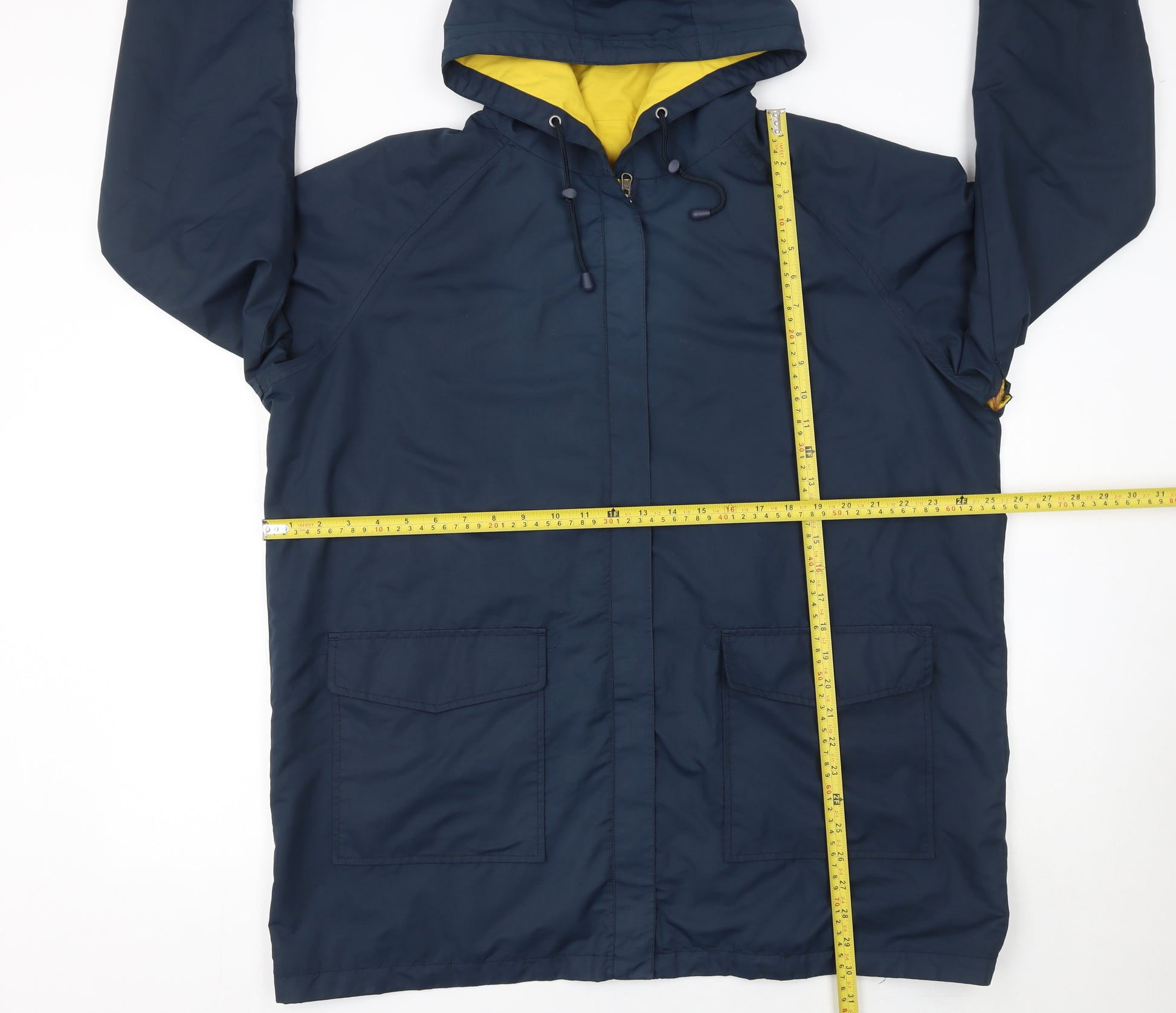 Stay dry in style with this Seasalt Cornwall reversible raincoat, designed for practical comfort and coastal charm. Crafted from 100% polyester in a smart navy blue with a contrasting yellow interior, this coat lets you switch up your look while keeping the elements at bay. The mid-length cut provides protection from rain and wind while maintaining a flattering silhouette, ideal for everyday wear or seaside strolls. Featuring a hooded design and full zip closure, the coat ensures effective coverage through unpredictable weather. It includes handy front flap pockets for convenience and is finished with a lightweight yet durable softshell construction that makes it breathable and comfortable for layering. The reversible feature adds extra versatility, allowing you to choose between the classic navy or the bright yellow side for added visibility on grey days. Perfect for men who appreciate functionality and refined simplicity, this Seasalt raincoat balances practicality with timeless coastal style. Machine washable for easy care, it’s ideal for hiking, travel, or casual outings. Despite a small tear near the underarm, it remains fully wearable and offers excellent value for a designer quality waterproof coat. Designed with thoughtful detail, this all-season raincoat embodies Seasalt Cornwall’s relaxed yet dependable craftsmanship, making it a perfect piece for anyone seeking dependable outerwear that performs well outdoors while staying effortlessly stylish.