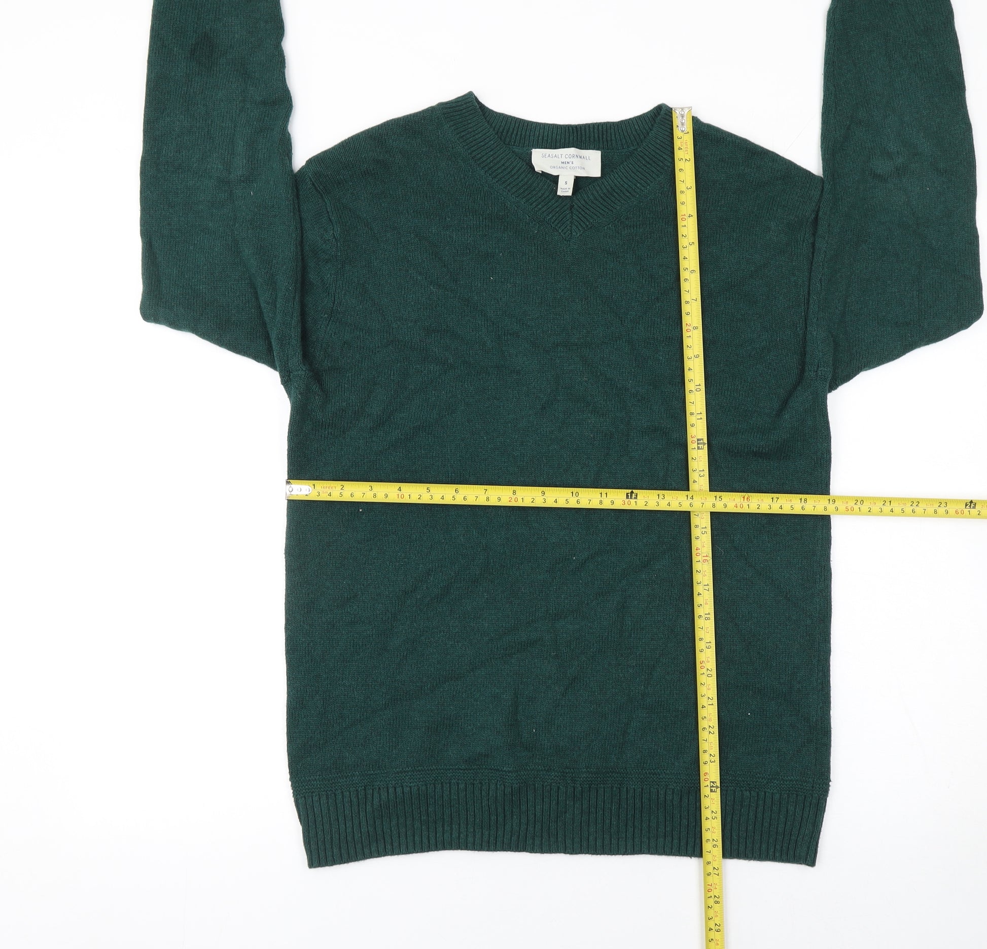 Men's Green Organic Cotton V-Neck Jumper Size S