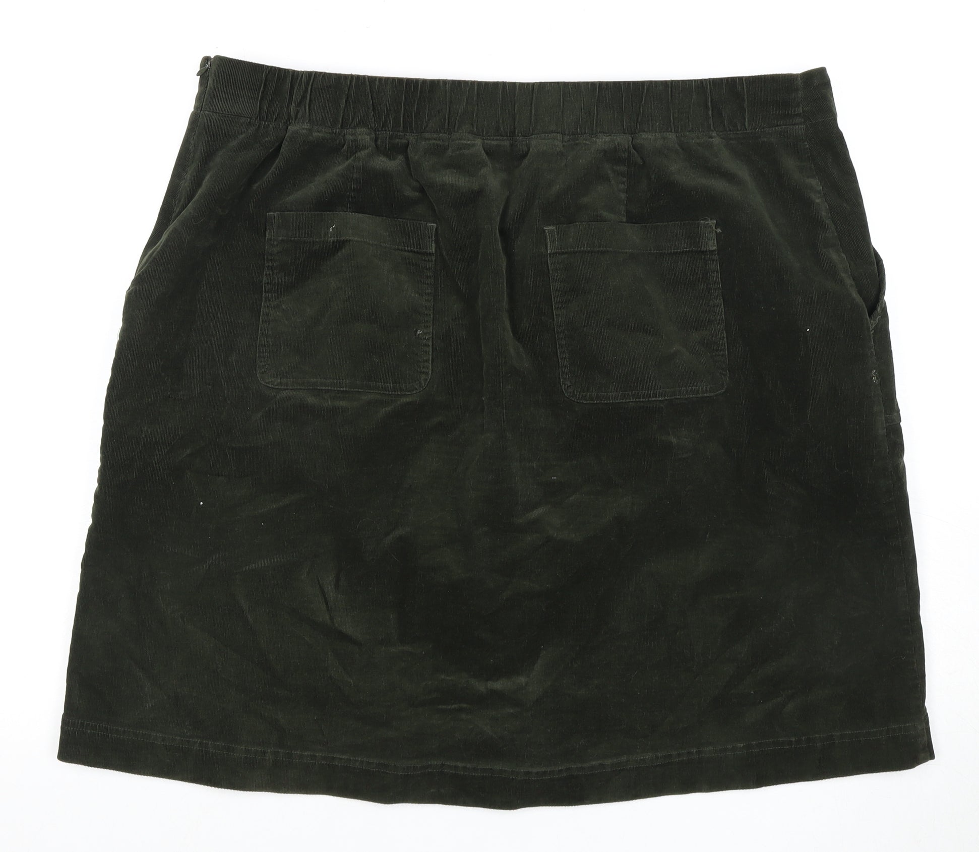 Elevate your wardrobe with the versatile and timeless charm of this Sea Salt Cornwall skirt. Crafted from high-quality organic cotton and elastane blend, this black skirt offers a comfortable and stretchy fit perfect for everyday wear. Its sleek and understated design seamlessly integrates with any ensemble, making it a must-have staple in your closet, whether for casual outings or more polished affairs. The skirt is designed for convenience, featuring practical pockets to keep your essentials within reach. Its elastic waist ensures a snug fit, providing ease of movement whether you're running errands or enjoying leisure activities. The smooth, no-pattern finish offers a blank canvas for your creative styling, letting your accessories and tops shine while maintaining effortless chic. In excellent condition, this skirt shows no visible defects and exudes a well-cared-for appearance. It is ideal for all seasons, transitioning comfortably from sunny summer days to layered winter ensembles. Size 20 offers a flattering fit, suitable for regular sizing needs. Ready to update your look with superior comfort and style? Don't miss out on integrating this essential black skirt into your collection.