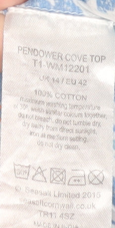 Elevate your wardrobe with this delightful Seasalt Cornwall blouse, a perfect choice for casual outings and everyday wear. Designed with a refreshingly vibrant blue floral pattern, it exudes a sense of spring and summer charm. Crafted from 100% cotton, this woven blouse ensures breathability and comfort, making it an ideal choice for warmer seasons. Featuring a round neck and classic 3/4 sleeves, it offers a versatile fit for various body types, while button accents add a touch of detail and character. Easy to care for and machine washable, this top promises style without the hassle. Pair it with your favourite jeans or skirt to create a relaxed, breezy look that is suitable for any casual occasion. Whether you're heading out for a leisurely brunch or a day at the beach, this blouse will keep you looking effortlessly chic and comfortable. Embodying the brand's emphasis on quality and design, this item is brand new and in excellent condition, ready to become a staple in your wardrobe.