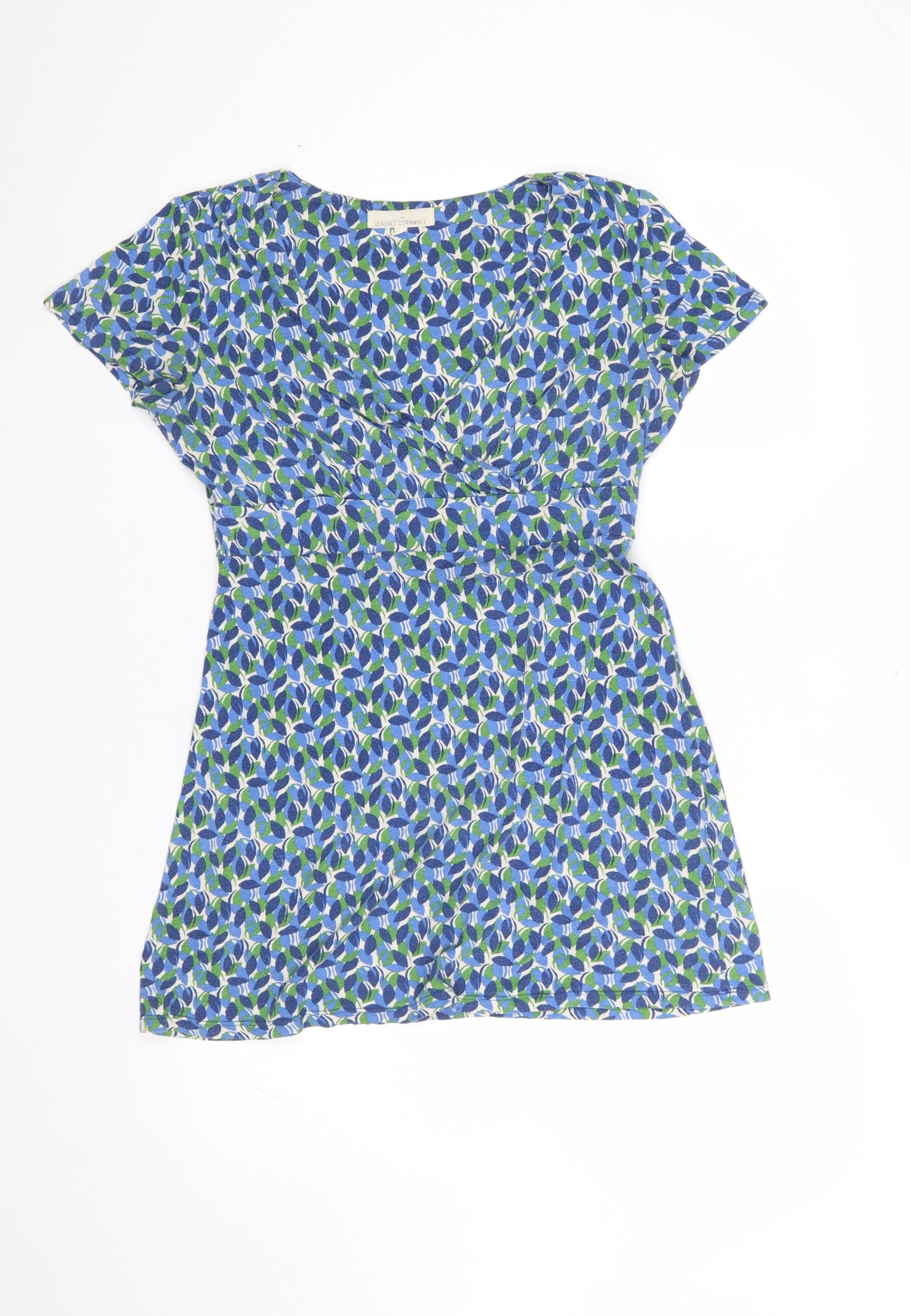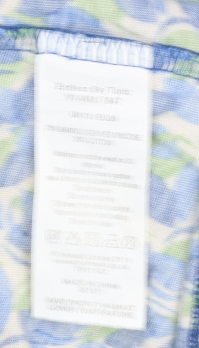 Womens Blue Floral Tunic Top Size 10 Bamboo Cotton