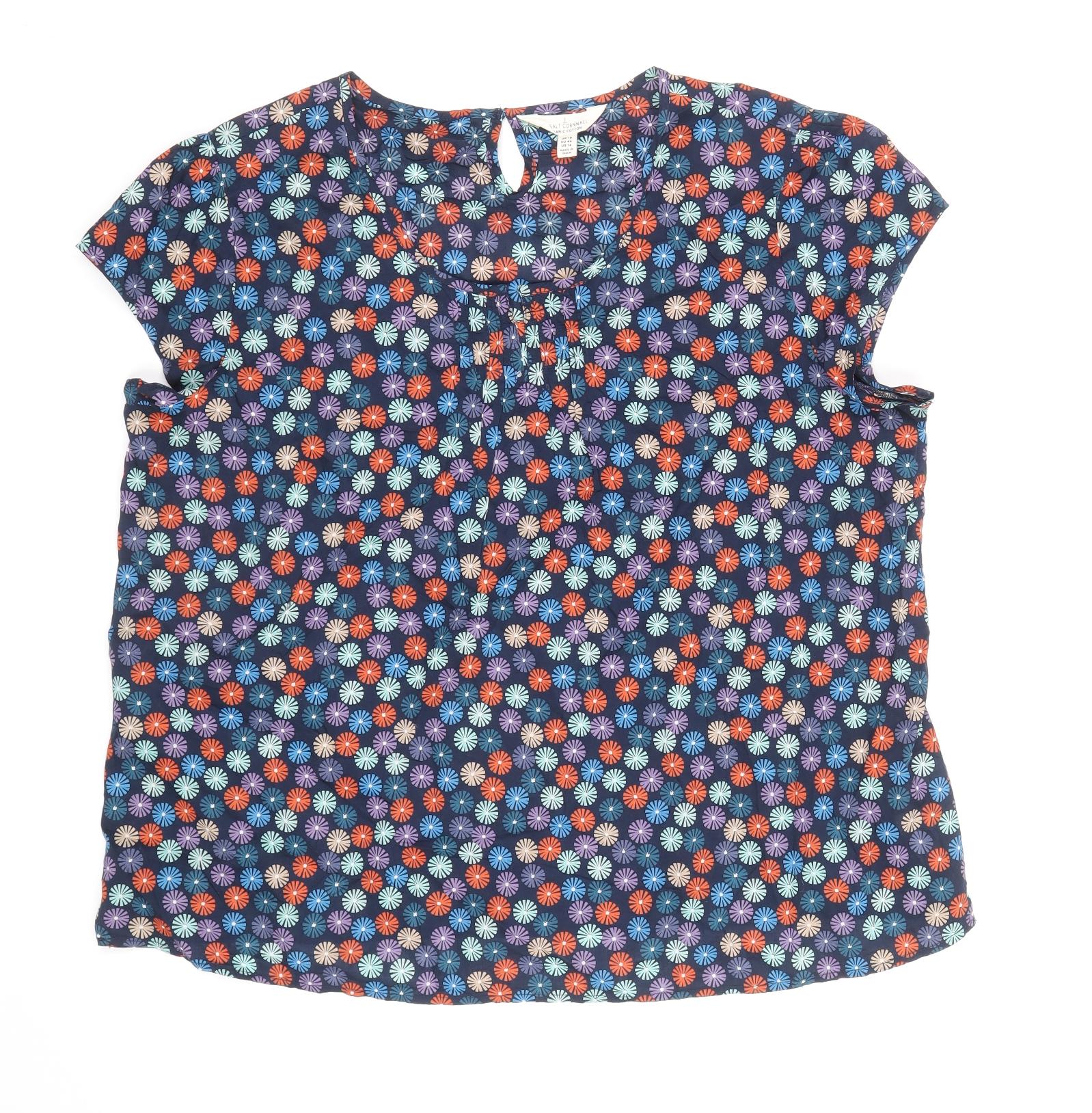 Womens Blue Geometric 100% Cotton Basic Blouse Size 18 Scoop Neck