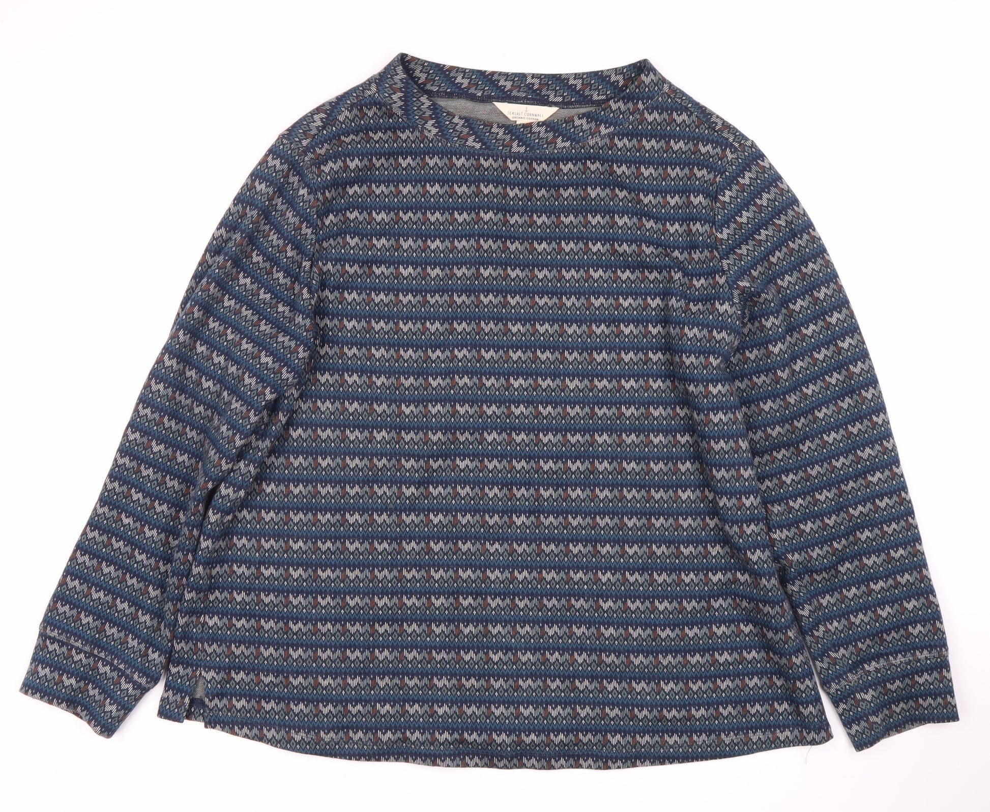 This Seasalt Cornwall top is a stylish and sustainable blend of organic cotton, polyester, and linen, ideal for eco-conscious fashion lovers. The relaxed fit is perfect for laid-back comfort, while the geometric pattern and rich blue colour add a touch of sophistication. Finishing with a round neckline and long, classic sleeves, this top is designed for versatility across all casual occasions. Ideal for autumn and winter, it offers comfort and style during cooler months. Machine washability ensures easy care and maintenance. Whether paired with jeans or layered over a casual dress, this top is a must-have for any wardrobe.