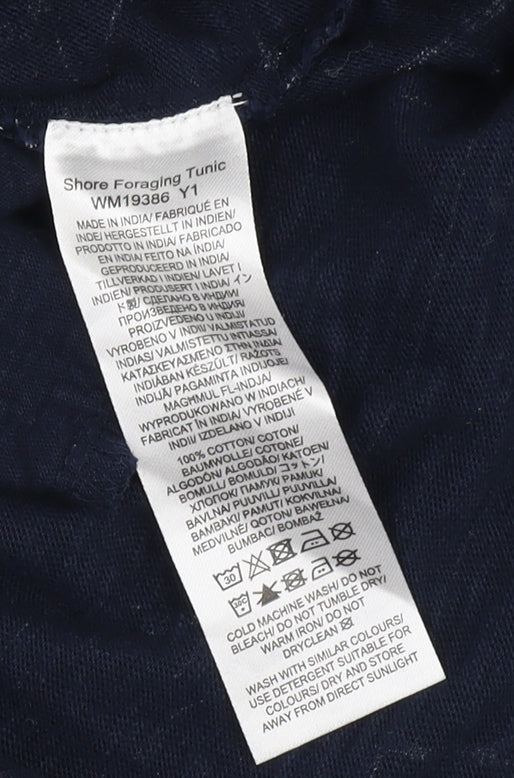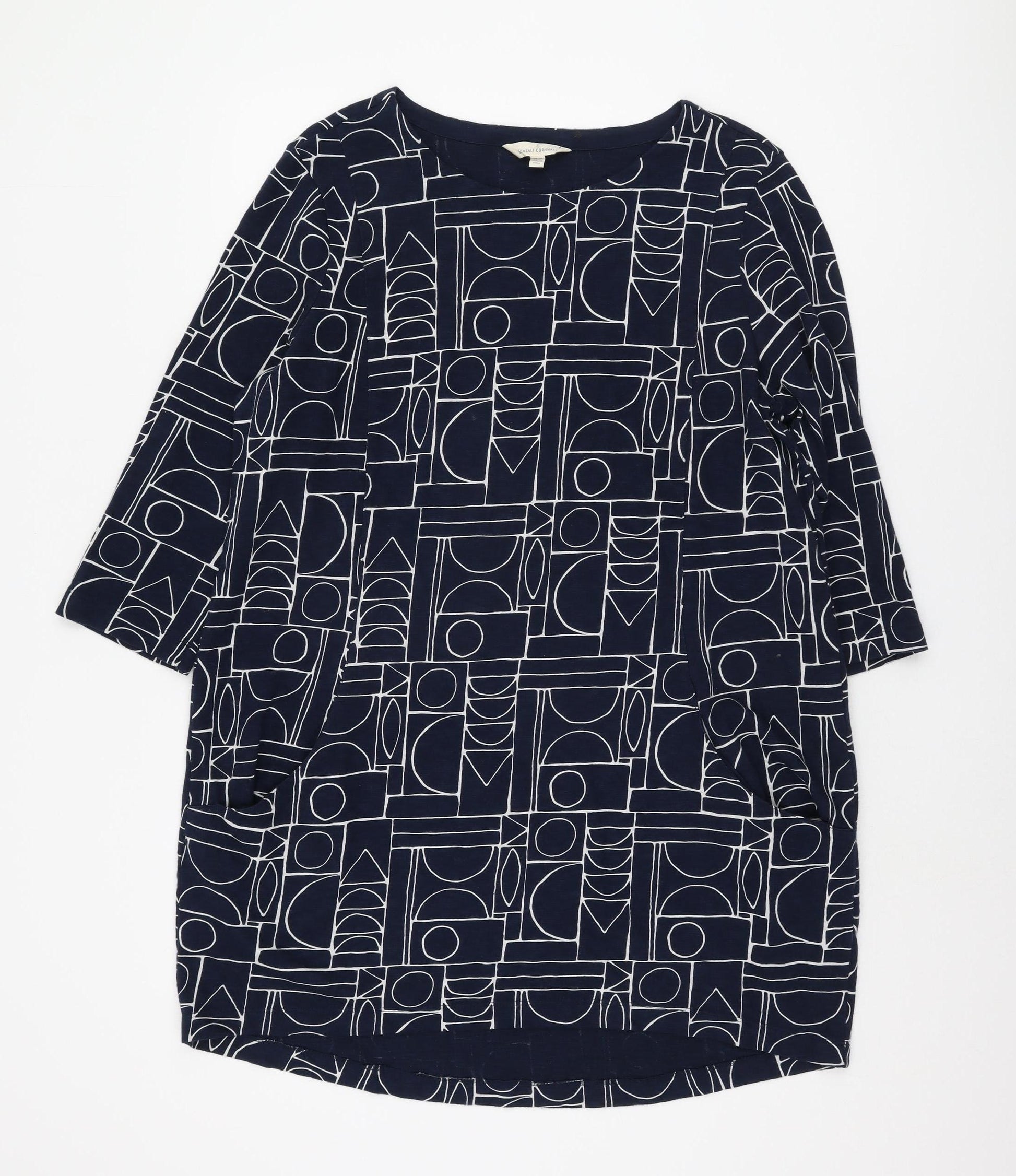 Elevate your casual wardrobe with this stylish women's tunic from Seasalt Cornwall. Designed in a vibrant blue colour with a striking geometric pattern, this tunic embodies both comfort and fashion. Crafted from 100% cotton, the fabric is breathable and soft, making it ideal for any season. The boat neckline and 3/4 sleeves add a classic touch to the tunic style, ensuring versatility and ease of wear. With a regular fit, this tunic provides a comfortable yet flattering silhouette for those relaxed days out. Perfect for casual occasions, this tunic pairs effortlessly with leggings or jeans. The pullover closure further enhances its simplicity and convenience, making it an easy choice for everyday wear. Enjoy the comfort of machine washable fabric, promising easy care and maintenance. In excellent condition, this tunic shows no visible signs of wear or damage. Whether you're heading out for a coffee catch-up or enjoying a leisurely day at home, this Seasalt Cornwall tunic is your new go-to piece. Refresh your collection with this chic and cosy attire.