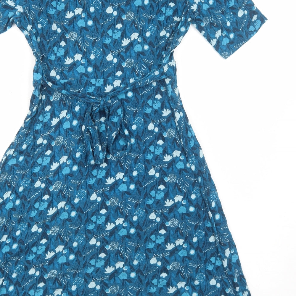 Quiz Womens Blue Floral Polyester Wrap Dress Size 10 V-Neck Zip