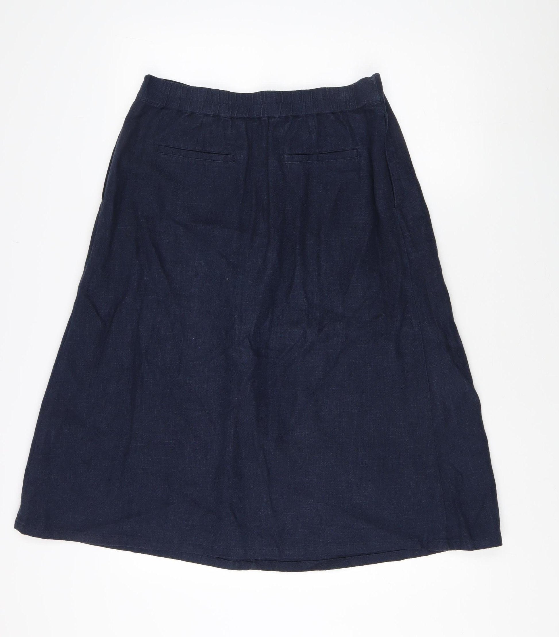 Marks and Spencer Women's Blue Linen A-Line Knee Length Skirt Size 12
