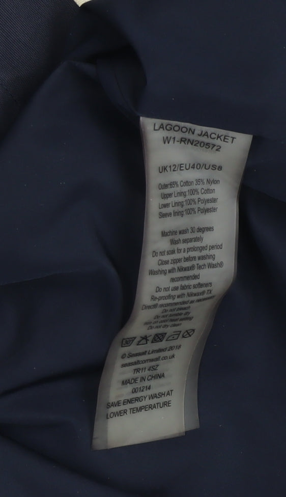 Stay stylish and dry whatever the weather with this Seasalt Cornwall women’s rain jacket in a classic navy blue tone. Designed for both performance and comfort, the jacket is part of Seasalt’s renowned ‘Rain’ collection, offering reliable waterproof and breathable protection. Crafted from a durable cotton and nylon blend, it provides a lightweight yet substantial shell ideal for layering during unpredictable weather. The jacket features a full-zip front with a contrasting white zip fastening for a modern touch, along with two convenient front pockets perfect for keeping hands warm or storing small essentials. The fully hooded design delivers additional coverage when the rain sets in, while the soft striped cotton lining ensures comfort and a pop of nautical-inspired charm. The fit is regular and flattering, sitting mid-length to offer full torso coverage without restricting movement. Versatile enough for everyday wear, it’s great for commuting, coastal walks, or weekend activities during spring, autumn, or mild winter days. Thoughtfully constructed for an active lifestyle, this jacket balances practicality and classic Cornish design, featuring Seasalt’s signature attention to detail. Finished with waterproof seams, breathable fabric, and a sturdy zip closure, it combines function with understated coastal style. This excellent-condition pre-loved piece has been lightly worn and remains clean with no visible flaws, ensuring it’s ready for many more seasons of use. Ideal for casual outings, travel, or layering over your favourite knitwear, this timeless Seasalt Cornwall waterproof jacket offers reliable all-weather protection and effortless everyday appeal. Upgrade your outerwear collection today with this stylish, sustainable choice designed for comfort, durability, and grace in any weather.
