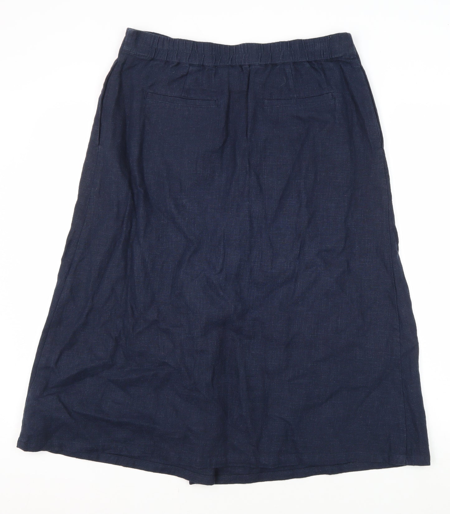 Marks and Spencer Women's Blue Linen A-Line Knee Length Skirt Size 12