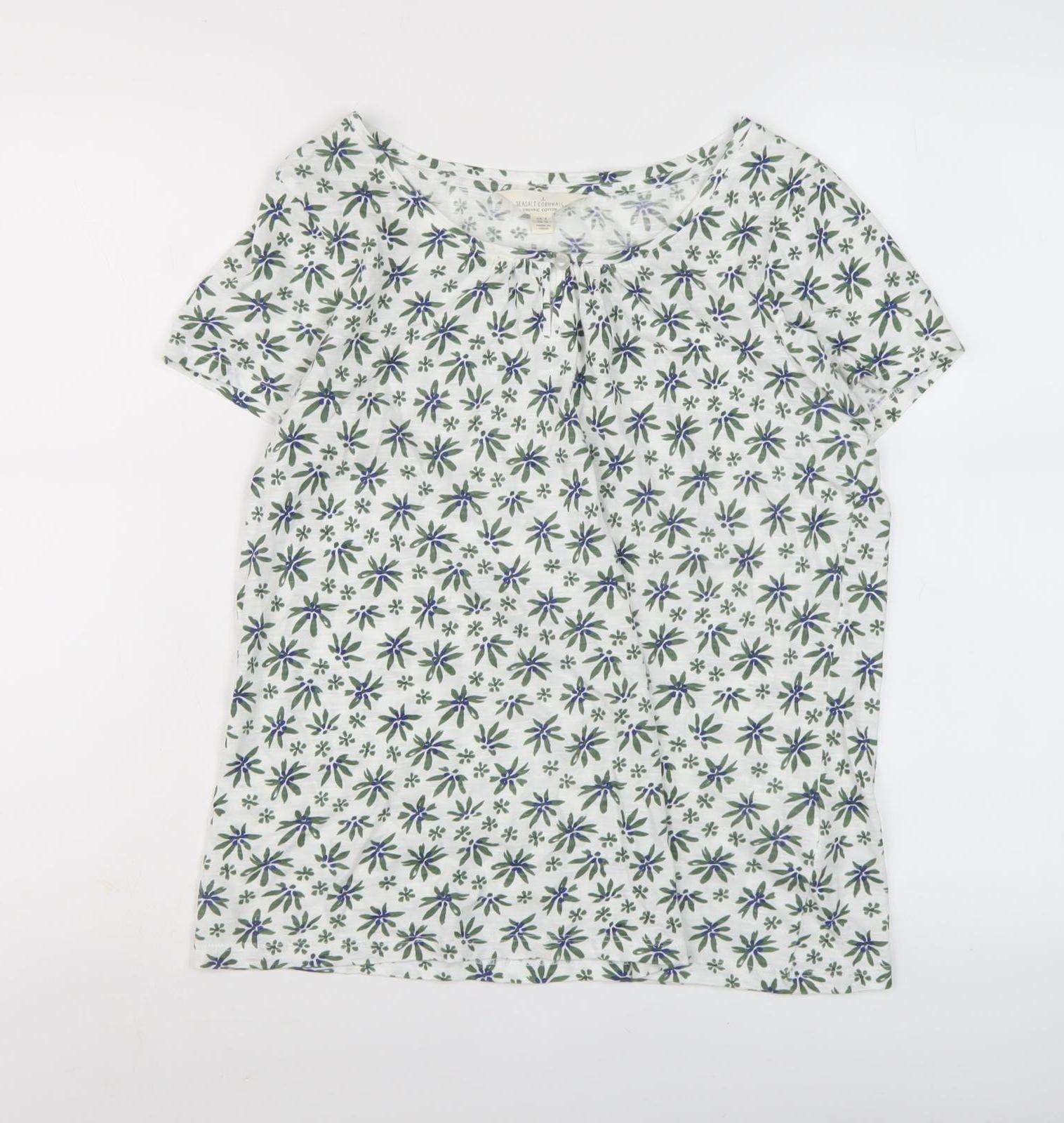 Explore a sense of florals with this whimsical women's T-shirt by Seasalt Cornwall. Rendered in a delightful multicoloured pattern, it captures the eye with its artistic flair. Crafted from 100% organic cotton, this item guarantees softness and comfort, making it a must-have for any casual occasion. Featuring a boat neck and short sleeves, it allows freedom of movement while maintaining an elegant silhouette. Designed with an alluring floral pattern, it stands as a statement piece, pairing perfectly with denim or summer shorts for a carefree look. Comprised of high-quality fabric, it is machine washable for easy care, ensuring it remains a favourite in your wardrobe for seasons to come. Whether it's a daytime stroll or an outing with friends, this floral T-shirt offers versatility and timeless style, making it an essential addition to any fashion-forward collection.