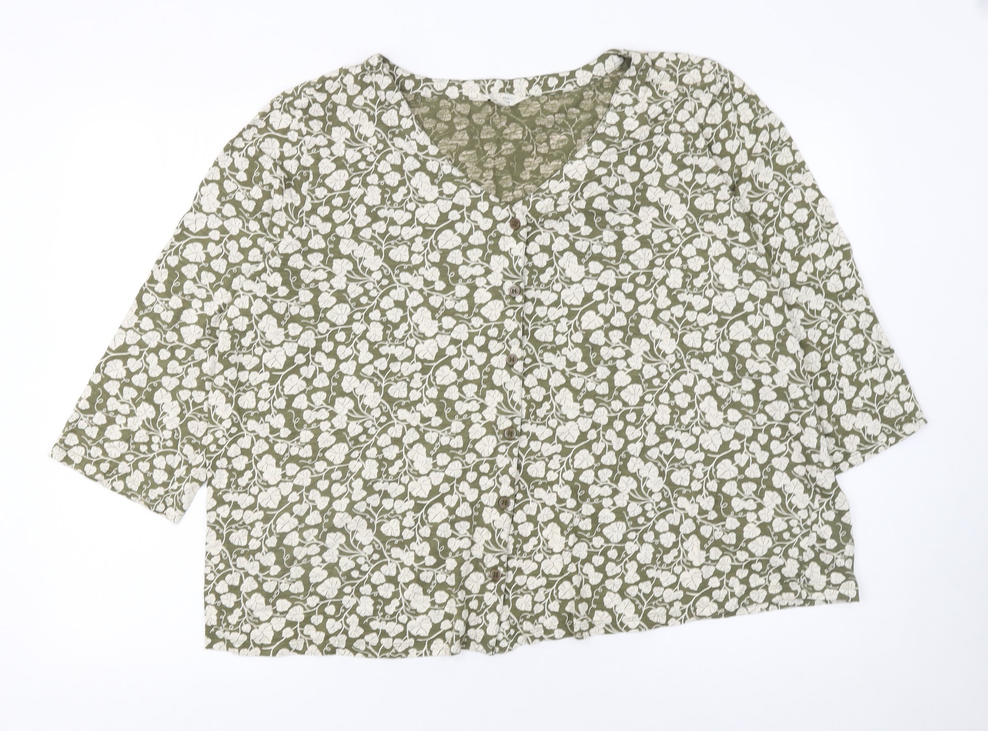 Womens Green Floral Cotton Tunic Blouse Size 20