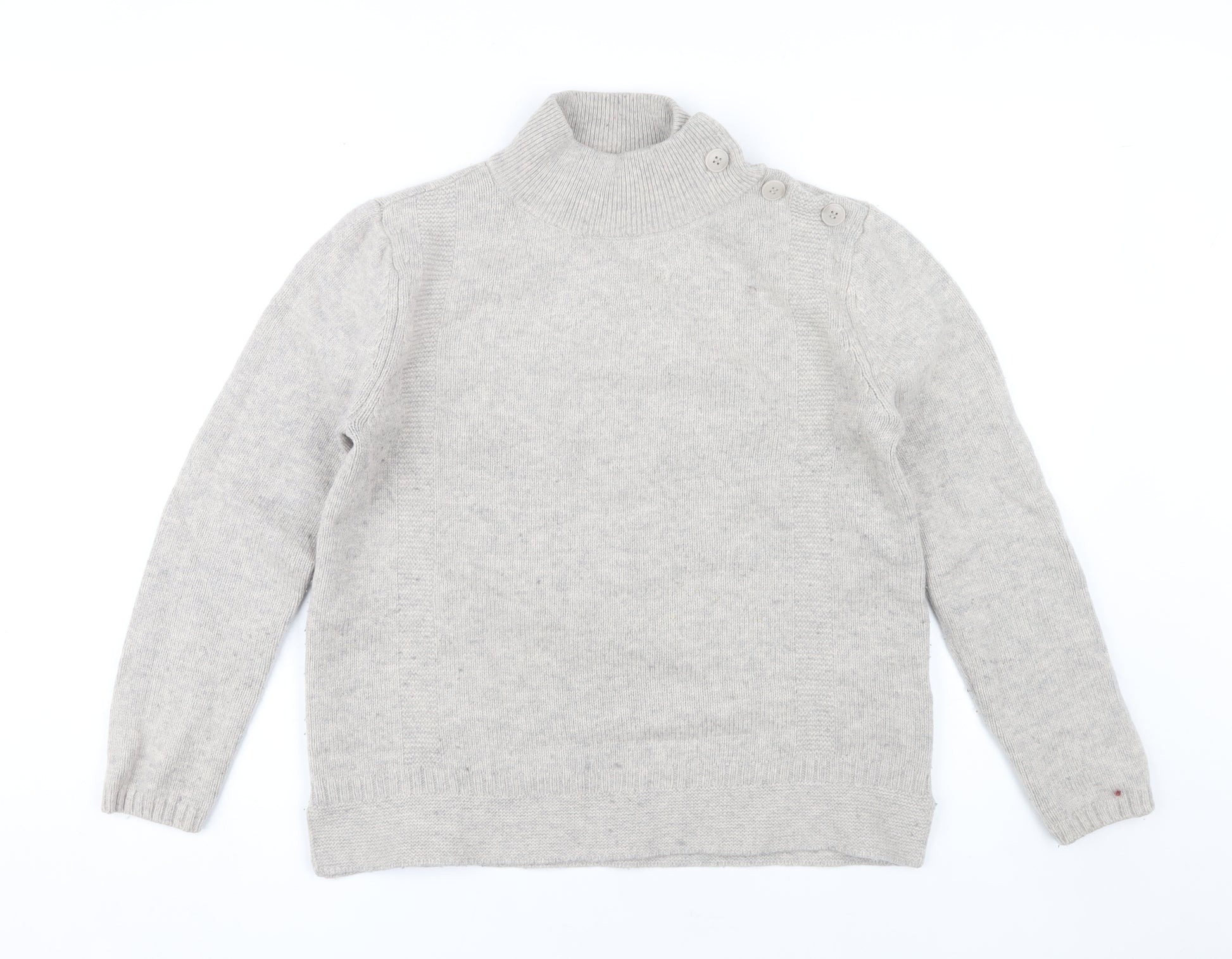 Step into the cooler months with style and comfort in this Seasalt Cornwall women's pullover jumper. Crafted with a blend of 80% wool and 20% nylon, this heavyweight, tight-knit jumper offers warmth and durability, making it perfect for autumn and winter. Its high neck and raglan long sleeves complement its grey shade, creating a timeless and versatile look. The button accents add a touch of detail, while the regular fit ensures comfort and ease of movement. Suitable for casual occasions, this jumper is ideal for layering and works well with both jeans and skirts for a chic yet relaxed ensemble. Easy to care for with the hand wash only instruction, this garment promises to be a staple in your wardrobe. Its excellent pre-loved condition means you can enjoy it with confidence, knowing it's been well-cared-for. Ideal for those who appreciate quality and style, this jumper is a must-have addition to your seasonal wardrobe.