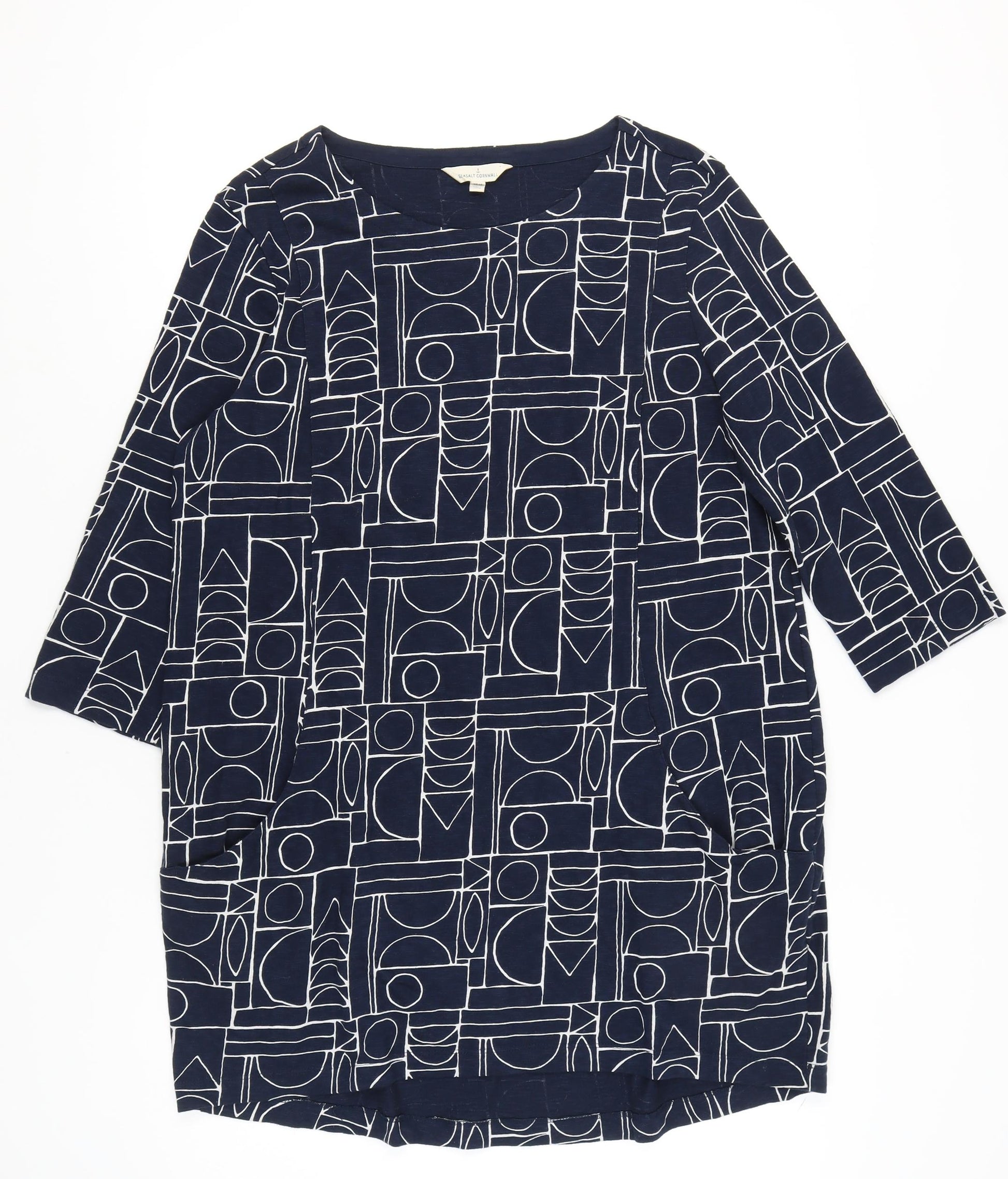 Elevate your wardrobe with this elegant Seasalt Cornwall tunic dress, perfect for the modern woman looking for comfort and style. Crafted from high-quality 100% cotton, this dress offers a soft and breathable feel, ideal for spring and summer wear. The navy backdrop highlights a striking geometric pattern, creating a contemporary look that is sure to turn heads.Designed in a versatile tunic style, it features a flattering boat neckline and practical 3/4 sleeves, making it suitable for casual outings and relaxed gatherings. This dress in a UK size 16 ensures a comfortable and flattering fit while maintaining effortless style.Effortlessly chic, pair it with your favourite flats or sandals for a laidback look, or dress it up with accessories for a more polished appearance. With its machine washable feature, care is made simple, offering convenience without compromising style.Whether you're heading to a casual lunch or enjoying a day out in town, this Seasalt Cornwall dress is a perfect addition to your collection. Fashionable, comfortable, and easy to wear, it’s a must-have piece for any style-conscious individual's wardrobe.