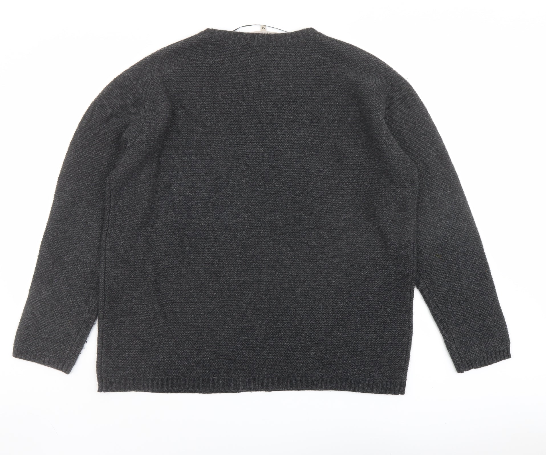 Mens Grey Round Neck Wool Pullover Jumper Size M Long Sleeve