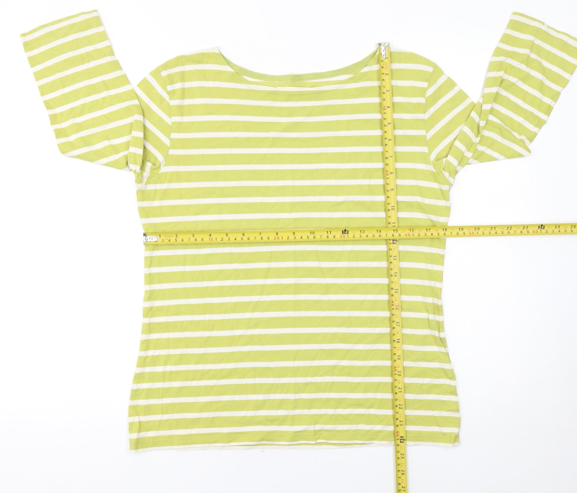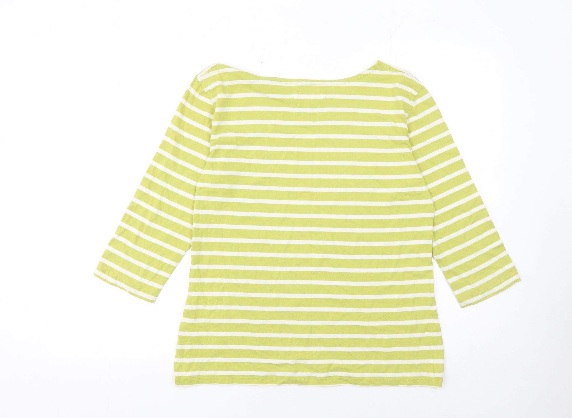 Women’s Green White Striped Boat Neck 3/4 Sleeve Cotton Top Size 12