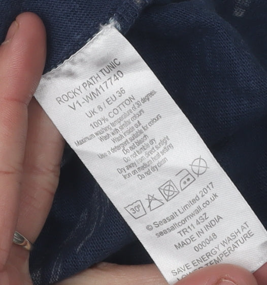 Elevate your casual wardrobe with this charming Seasalt tunic dress, perfect for the spirited woman who values comfort and style. Crafted from 100% cotton jersey, this dress offers a soft and breathable fit, making it ideal for spring and summer wear. The delightful blue hue, accented with a leaf print, adds a touch of nature-inspired flair to your ensemble. Designed in a flattering tunic style, it features a versatile boat neckline and comfortable 3/4 sleeves, allowing for easy layering on cooler days. The casual design makes it perfect for various occasions, whether you're enjoying a day out with friends or running daily errands. Effortlessly slip it on with its convenient pullover closure and enjoy the luxurious feel of quality craftsmanship. Its regular size 6 fit ensures a flattering silhouette for petite frames. Easy garment care means you can machine wash and maintain its pristine condition with ease. This gently used piece remains in excellent condition, free from noticeable flaws. Priced affordably, it offers exceptional value, allowing you to enjoy a high-quality piece without breaking the bank. Don't miss the opportunity to add this versatile tunic to your collection, combining seamless style with unrivaled comfort.