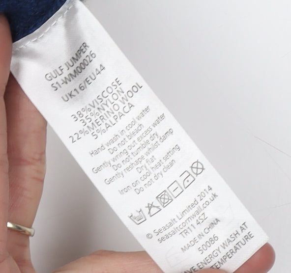 Embrace the winter season with this elegant Seasalt women's jumper in a vibrant blue hue. Designed to offer both warmth and style, this piece features a classic roll neck that provides extra comfort against the chill. Perfectly suited for casual outings, the jumper is crafted from a luxurious blend of Viscose, Nylon, Merino Wool, and Alpaca, combining softness with durability. The long sleeves ensure added warmth, making it an essential wardrobe staple for those cooler days.The jumper boasts a timeless knit fabric that adds a touch of sophistication to any ensemble. Its regular fit and size 16 offers a flattering silhouette that enhances your figure while ensuring ease of movement. The absence of patterns allows for versatile pairing, whether with jeans for a relaxed day out or with tailored trousers for a more polished look.Acquire this knitwear gem featuring a rich winter blue colour that effortlessly complements various styles and accessories. With its hand wash care, maintaining the condition of this exquisite jumper is simple and convenient, ensuring it remains a favourite in your collection. Experience the perfect blend of functionality and fashion with this Seasalt creation, ideal for the modern woman looking to stay stylishly warm.