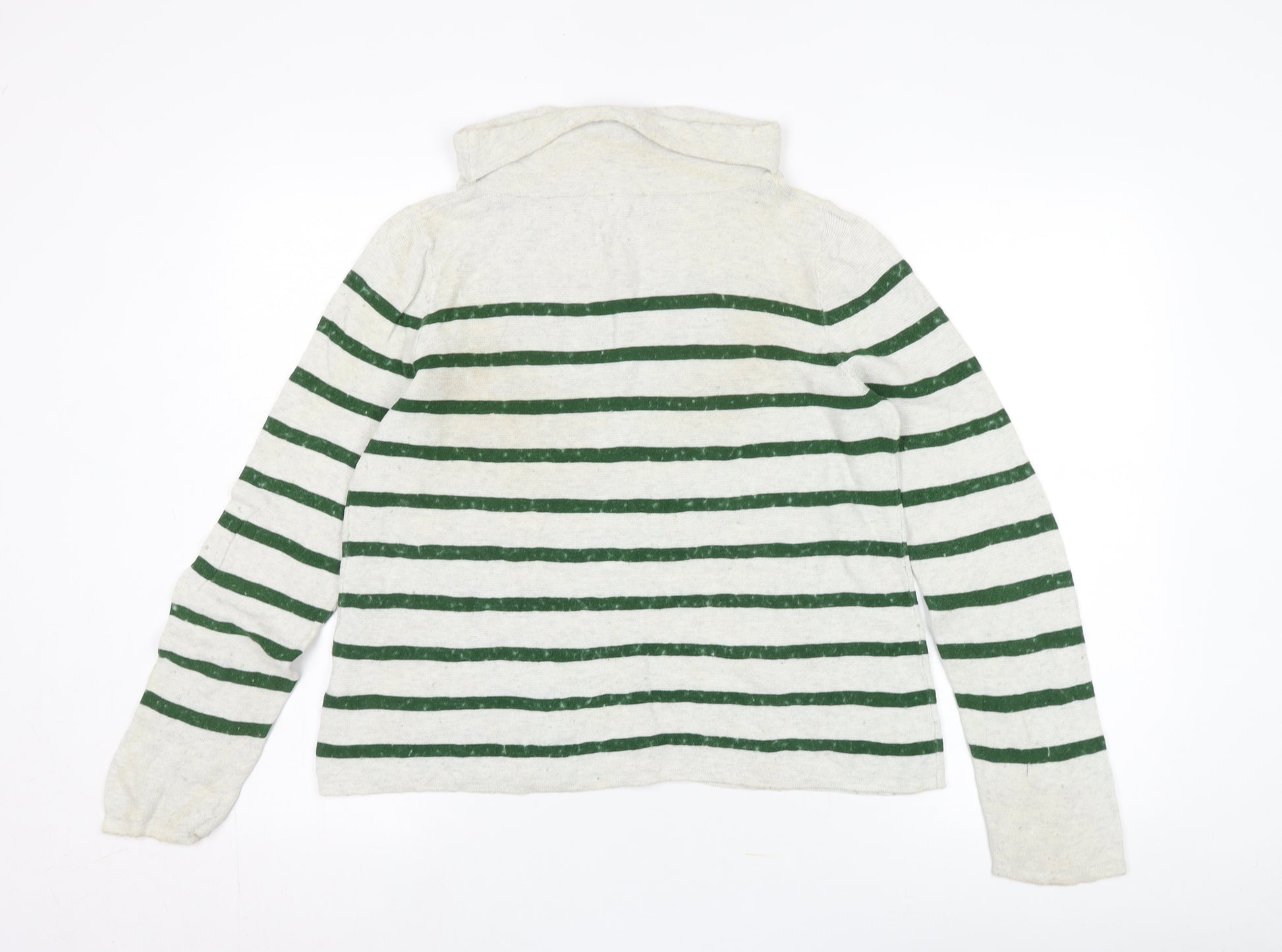 Women's Green Striped Roll Neck Jumper Size 12