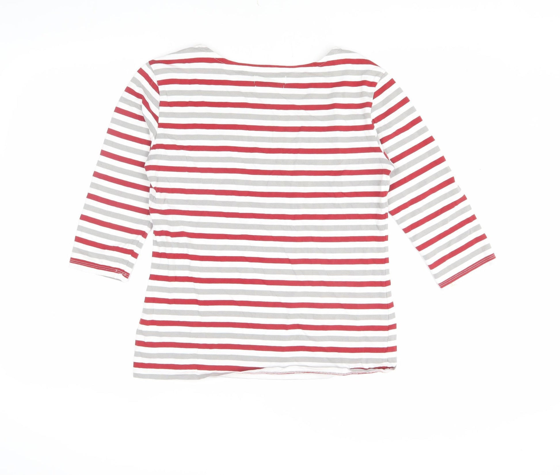 Seasalt Women’s Multicoloured Striped 3/4 Sleeve Boat Neck Cotton Top Size 10
