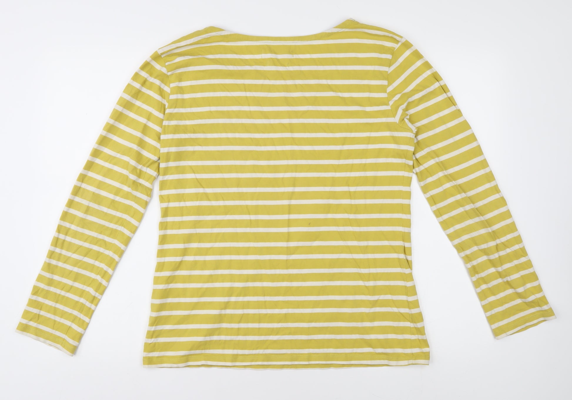 Introducing the Seasalt Women's T-Shirt, a staple piece for any casual wardrobe. This size 14 T-Shirt is crafted from 100% organic cotton, offering a soft, breathable feel that complements any day out in the sun. Designed in a vibrant yellow, it features a classic striped pattern that adds a touch of style to your everyday outfits. The long sleeves and boat neck create a flattering silhouette, perfect for layering on cooler spring or summer days. Whether you're dressing up for a casual get-together or just enjoying a relaxed day at home, this tee promises comfort and style. Easy to care for with machine washability, it ensures you'll reach for it time and time again. Discover your new favourite basic style with unbeatable ease and versatility.