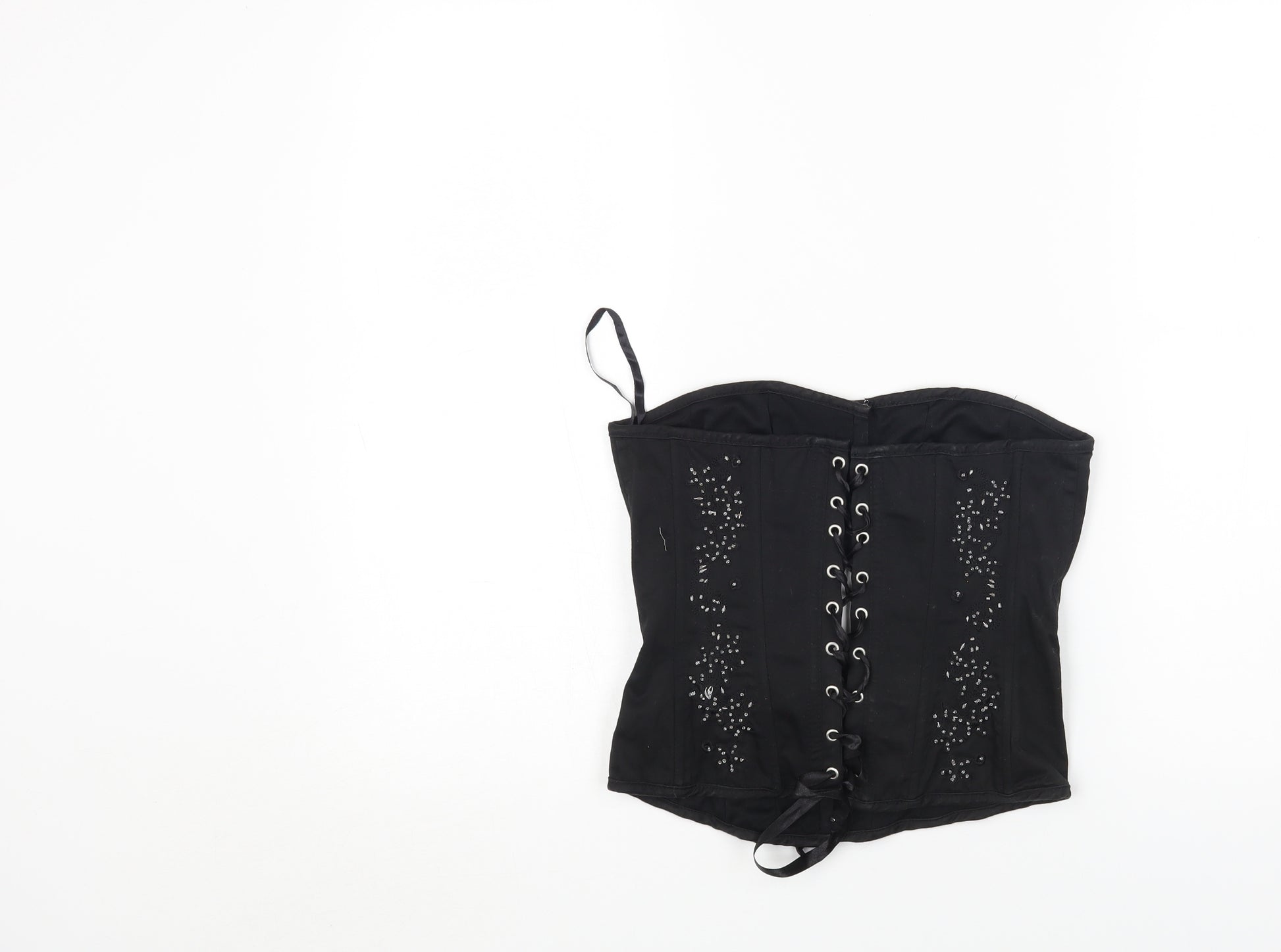 Womens Black Cotton Cropped Tank Size 8 Off the Shoulder