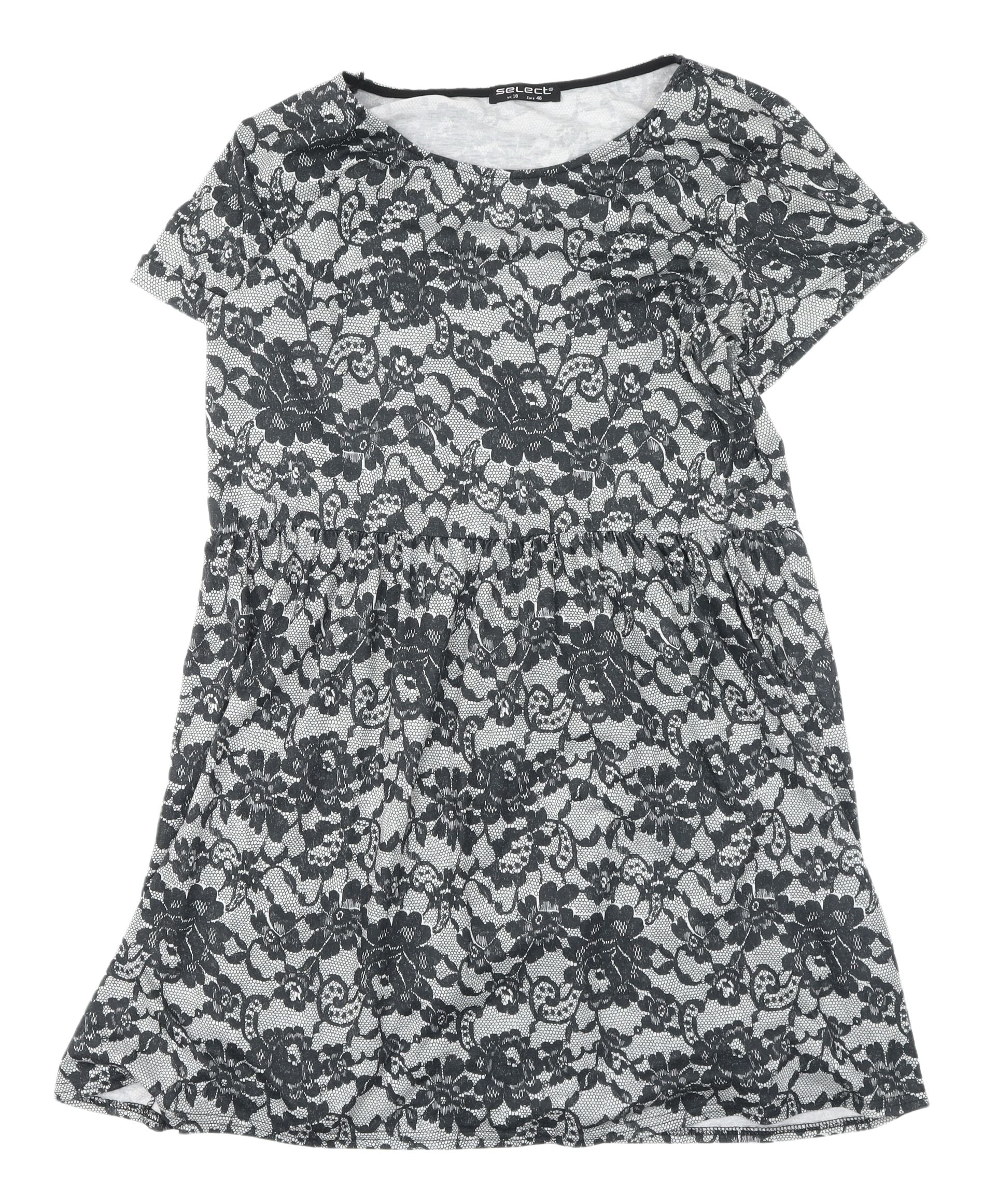 This Select Women's Shift Dress is the perfect blend of style and comfort, designed for those who appreciate elegance in a casual form. Crafted in a knee length, this black dress with its delicate floral lace overlay is ideal for both casual outings and cocktail parties. With a regular size fit of 18, this dress brings a relaxed yet fashionable appearance, ensuring every woman stands out in style. The short sleeves and round neck design provide a touch of simplicity, while the floral pattern adds an element of sophistication. Made from a blend of 95% polyester and 5% elastane, the dress offers a comfortable stretch, making it a lightweight option perfect for the warmer seasons like spring and summer. The pullover closure ensures an effortless wear. Additionally, it's machine washable for convenient care. Though pre-owned, it remains in excellent condition with no visible signs of wear, promising a fresh look with every wear. Its lace accents and floral theme make it a charming choice for various social gatherings.