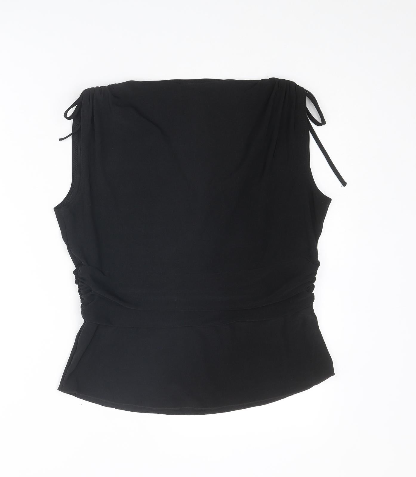 Womens Black Polyester Basic Blouse Size 16 V-Neck - Tie Shoulder Detail