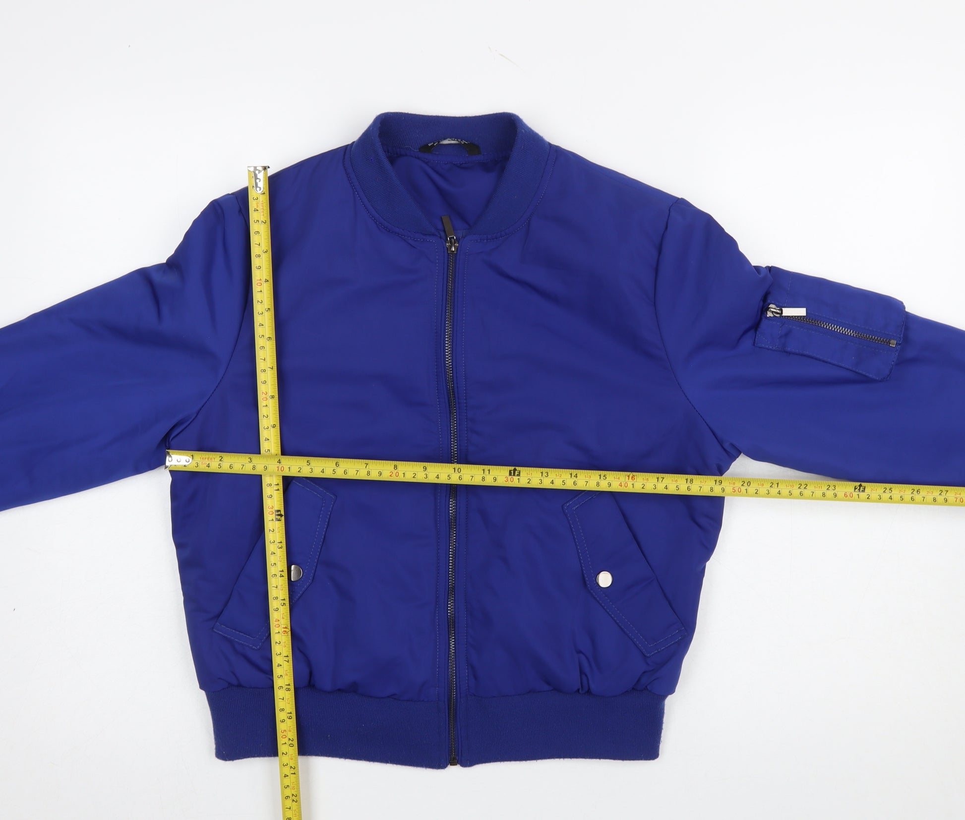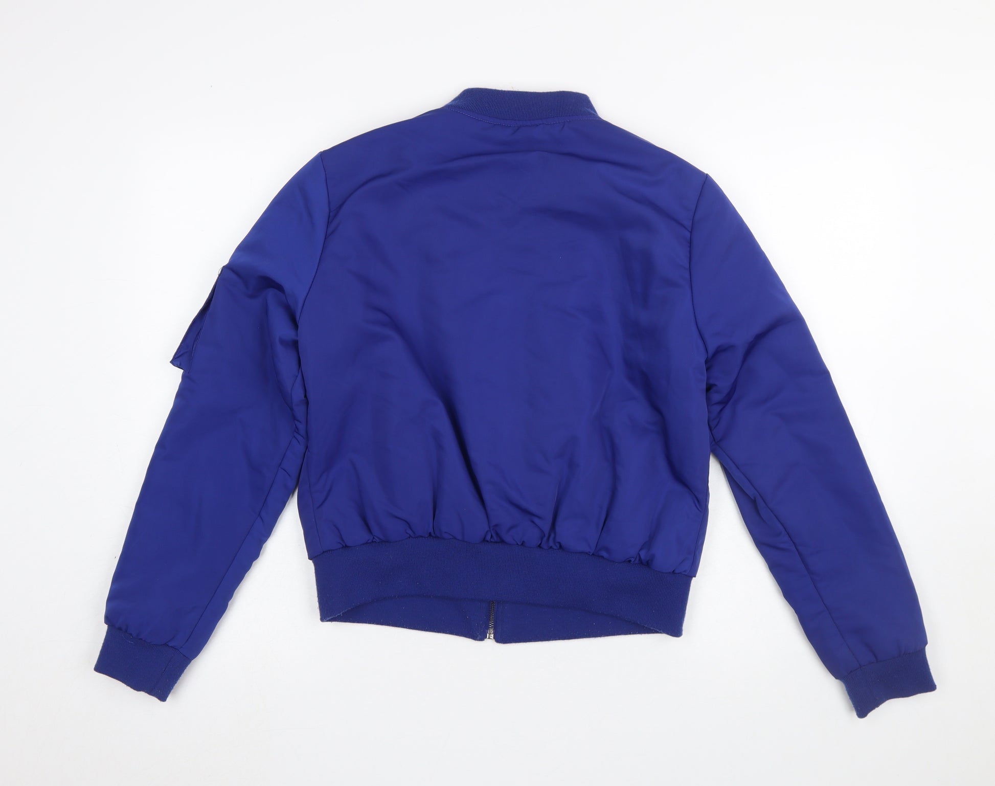 Add a pop of colour to your everyday wardrobe with this vibrant blue bomber jacket from Select. Designed for a classic, relaxed fit, this short-length jacket features a full front zip closure and ribbed hem and cuffs for a flattering, comfortable fit. Made entirely from durable polyester, it’s both lightweight and easy to care for, making it ideal for transitional weather. The bomber style adds a timeless streetwear edge, while the practical front flap pockets and sleeve zip pocket bring a touch of utility chic. The inner lining is fully polyester, offering smooth comfort against the skin and reliable insulation for cooler days. Perfect for layering over casual outfits, this jacket works well paired with jeans and trainers, or even over a dress for a bold contrast. With its modern silhouette and royal blue hue, this piece transitions effortlessly from casual daywear to evening outings. Designed with quality and practicality in mind, it’s ideal for autumn, spring, and cool winter days. While lightly worn, it remains in very good overall condition with only minimal lint on the ribbed details, showing clear signs of gentle use but plenty of wear left. Whether you’re looking to update your outerwear collection or add a practical yet stylish layer, this Select bomber jacket brings an effortless balance of comfort and trend appeal to your wardrobe. Durable, versatile, and easy to maintain, it’s the perfect go-to piece for anyone wanting to inject a splash of colour and contemporary fashion flair into their everyday style. A fashionable choice for women who love casual sophistication and easy-going street-inspired looks.