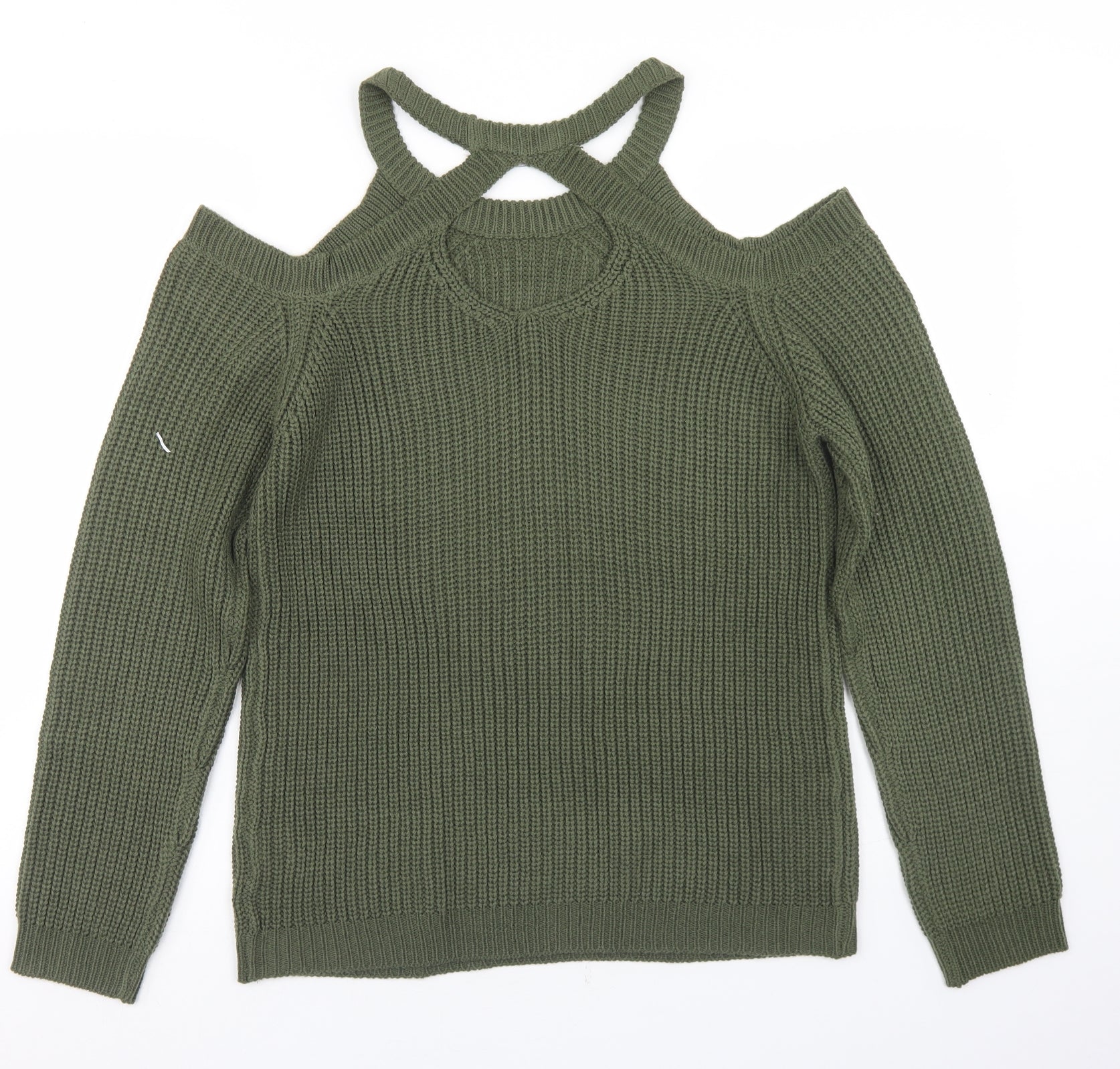 Womens Green Round Neck Acrylic Pullover Jumper Size 14 - Cut Out