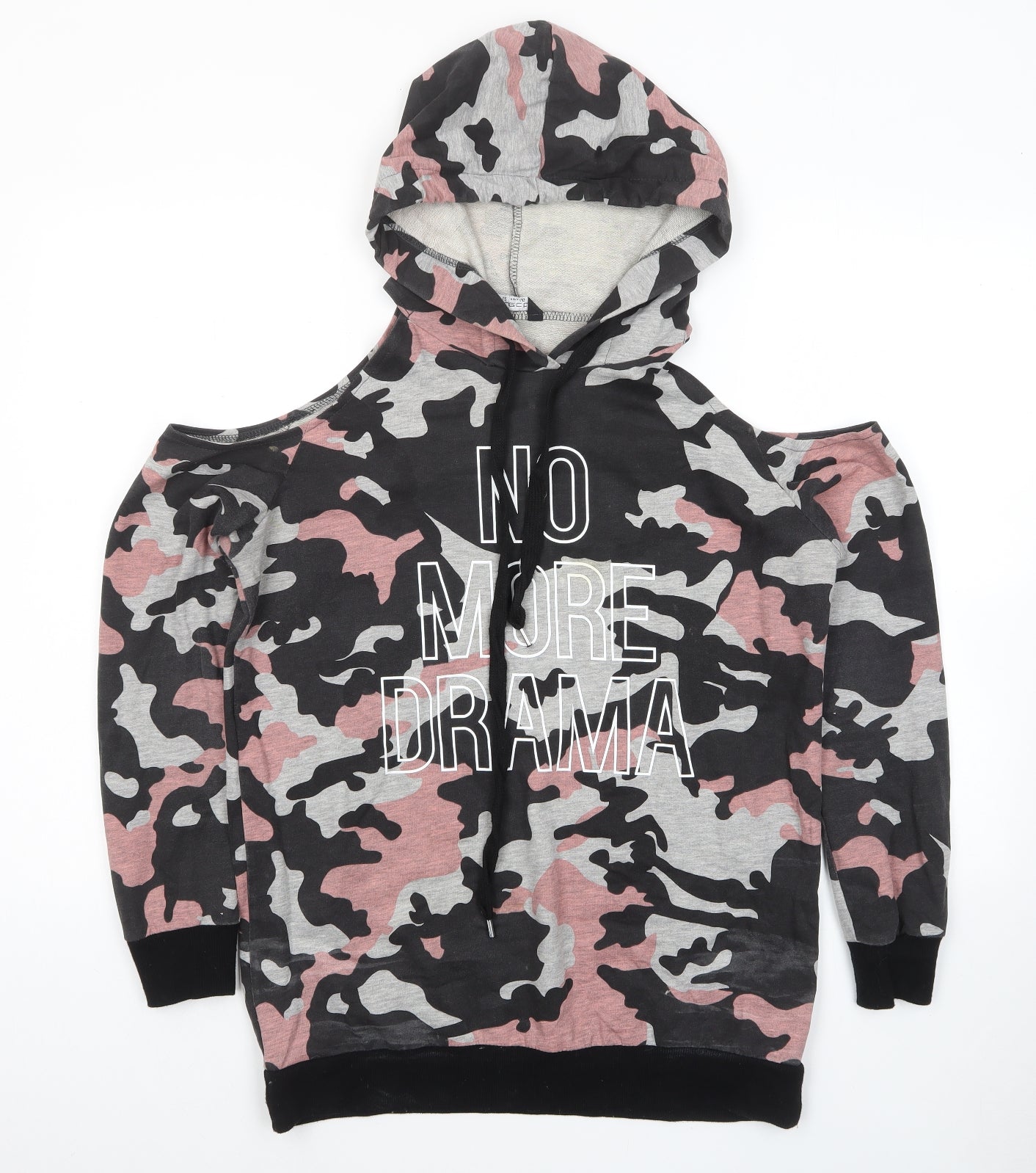 Womens Multicoloured Camouflage Cotton Pullover Hoodie Size 12 Pullover - No More Drama Cold Shoulder