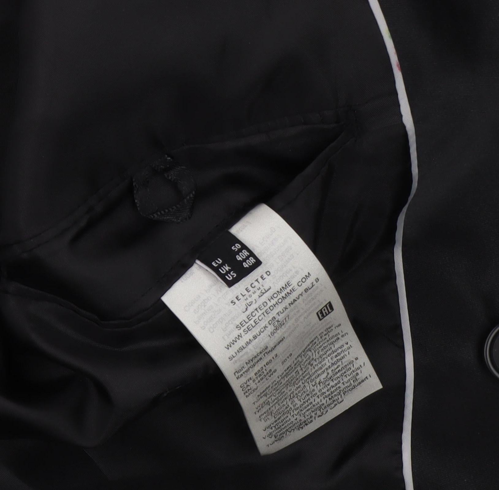 Elevate your formal wardrobe with this elegant Selected Homme double-breasted blazer. Crafted in sophisticated blue, this piece features a classic shawl lapel and is tailored for a regular fit. Made from a blend of polyester, wool, and elastane, it promises both style and comfort. Perfect for the colder seasons, it easily complements your autumn and winter outfits. With a sleek six-button front, this blazer is ideal for formal occasions. Despite being pre-owned, it remains in very good condition, showing only slight marks that do not detract from its overall appeal. Enjoy the luxurious feel and timeless look, ready to impress at any event. Add this versatile piece to your collection and stand out with style.