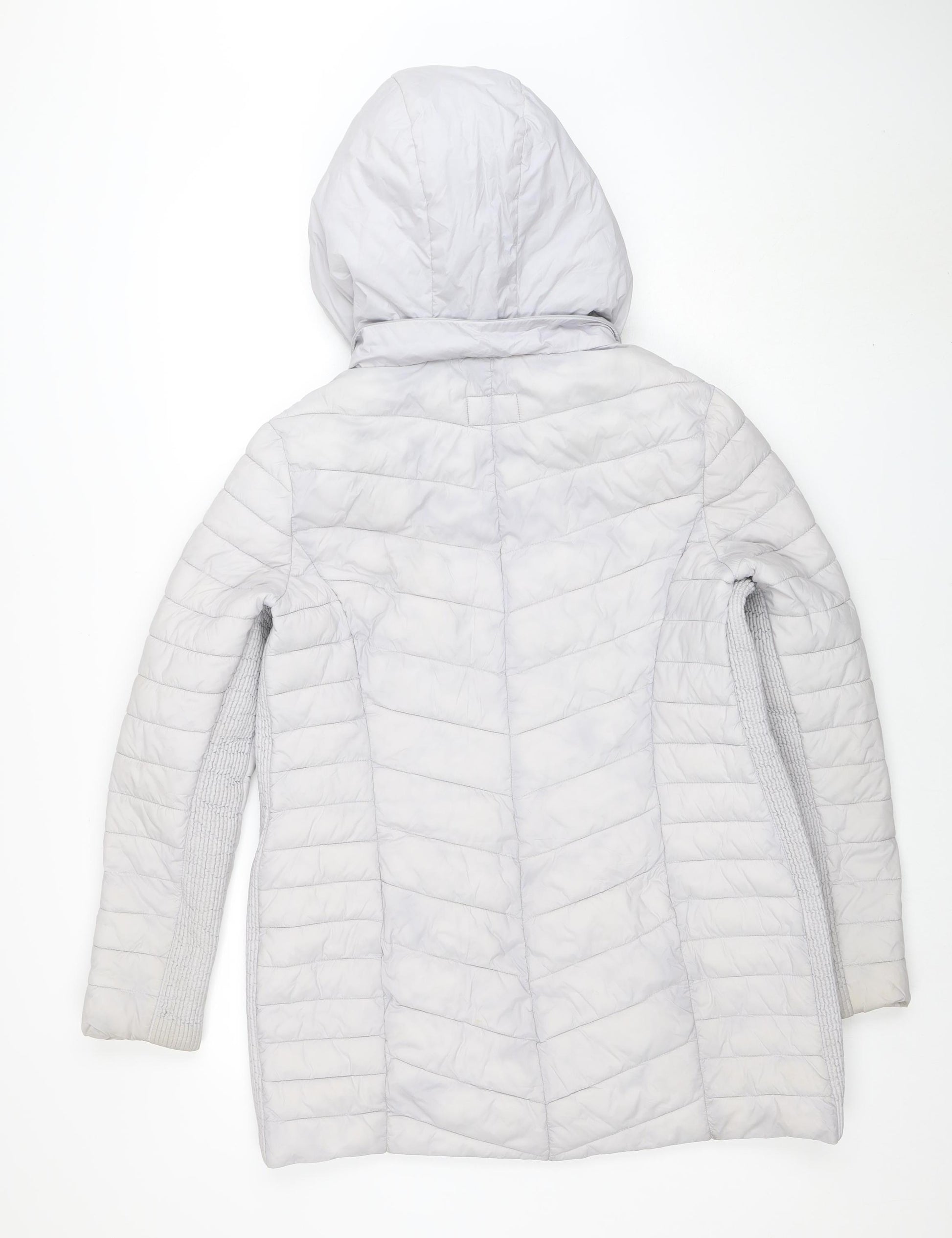 Stay effortlessly stylish and cosy during colder months with this Seraphine women's grey hooded puffer jacket in size 12. Crafted from 100% polyamide with a soft polyester fill, this mid-length jacket provides excellent warmth while keeping a lightweight and comfortable feel. The jacket’s sleek quilted design gives it a modern, flattering silhouette that pairs well with jeans, dresses, or maternity essentials, making it a versatile addition to your wardrobe. Designed with practicality in mind, it features a full zip fastening with a secure button tab at the neck, providing extra protection from chilly winds. The detachable hood adds flexibility for variable weather, while two side pockets provide convenient space for your essentials. Its smooth polyamide shell and lining ensure durability and easy maintenance, while the subtle grey colour keeps the look understated yet chic, easily matching with most outfits. Perfect for transitional seasons like autumn and mild winter days, this Seraphine jacket combines fashion and function seamlessly, making it an excellent choice for both casual outings and travel. The lining provides additional comfort and insulation without adding bulk, while the quality craftsmanship ensures long-lasting use. This pre-loved jacket remains in very good condition, showing only minor signs of gentle use with slight discolouration in one area that does not detract from its overall appearance. Ideal for women seeking both sophistication and practicality in their outerwear, this puffer jacket guarantees warmth, comfort, and versatility. Whether you’re commuting, strolling in the park, or heading to a weekend getaway, this piece from Seraphine is perfect for keeping you warm and stylish throughout the season.
