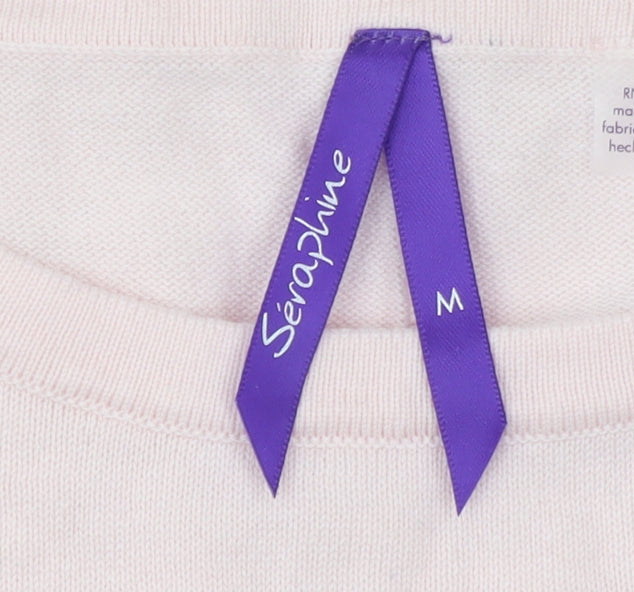 Add a touch of effortless comfort and soft elegance to your wardrobe with this Séraphine Women's Pink Pullover Jumper. Crafted from pure cotton, this lightweight knit offers exceptional breathability and comfort, making it ideal for everyday wear throughout spring and summer. Designed in a relaxed fit, this maternity style allows for ease of movement while gently draping over your silhouette for a flattering finish. Featuring a soft crew neckline and chic metal button details along the shoulders, it provides subtle sophistication while keeping things practical and stylish. The ribbed cuffs, dolman-style 3/4 sleeves, and adjustable tie at the hem complete the casual-yet-polished look, making it a highly versatile piece for layering or wearing solo. The soft blush pink hue is timeless and adds an understated femininity, easily pairing with jeans, leggings, or skirts for a well-rounded casual look. Its machine washable design ensures easy care — perfect for active, modern lifestyles. Séraphine’s commitment to quality maternity wear shines through this simple yet elegant knit, designed to grow with you and transition seamlessly into post-pregnancy use. Whether you’re relaxing at home, out for a stroll, or meeting friends, this cotton jumper delivers both comfort and style. Excellent pre-loved condition with minimal signs of wear ensures an affordable and sustainable choice for fashion-conscious shoppers. A lovely essential that blends comfort, practicality, and a gentle charm for a versatile maternity wardrobe. Pair it with neutral or darker tones to highlight the soft pink shade and let the button accents subtly elevate your outfit with a polished final touch — perfect for any laidback or casual outing where you want to feel comfy yet put-together without effort.