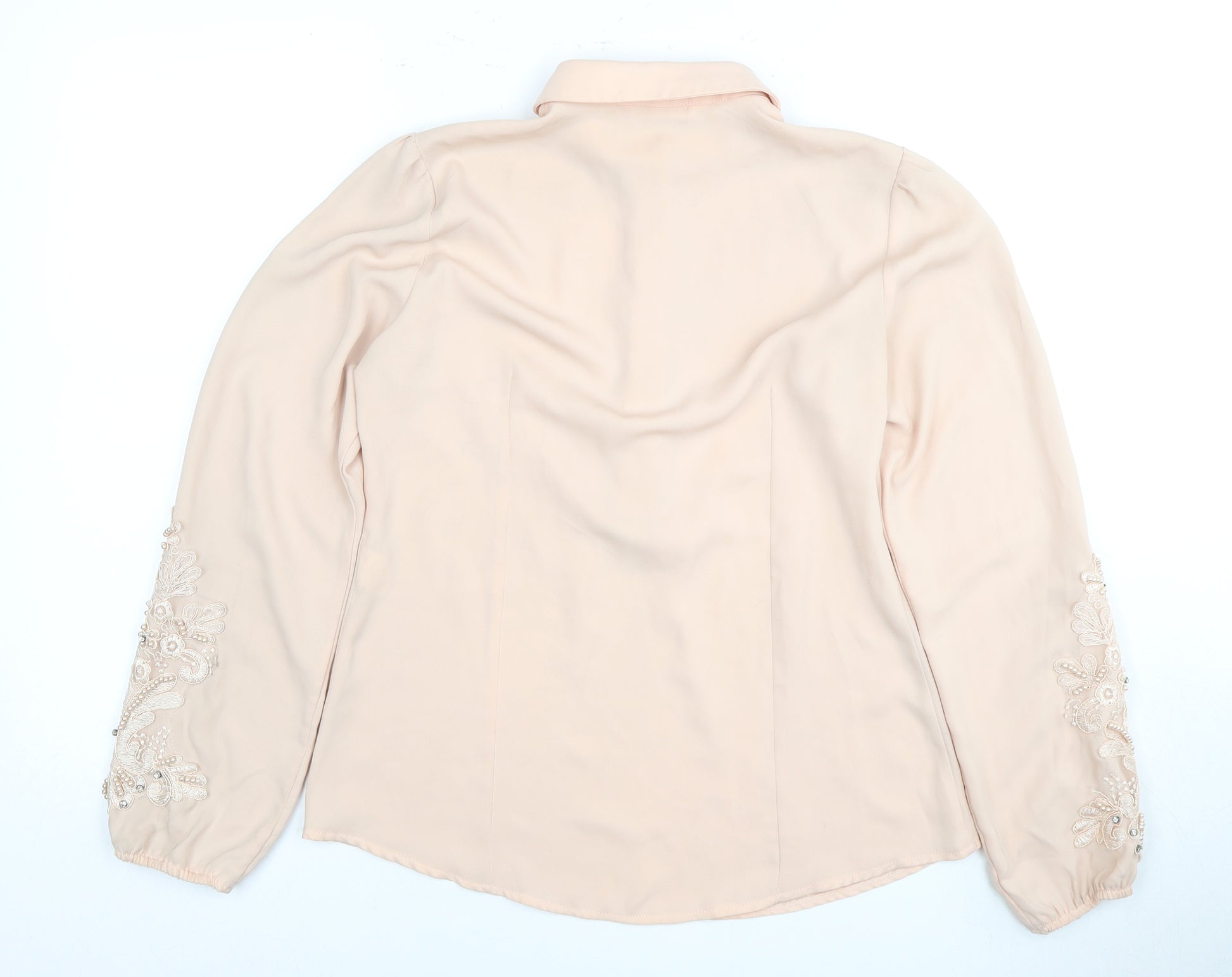 Beige Women's Long Sleeve Beaded Blouse Size 10