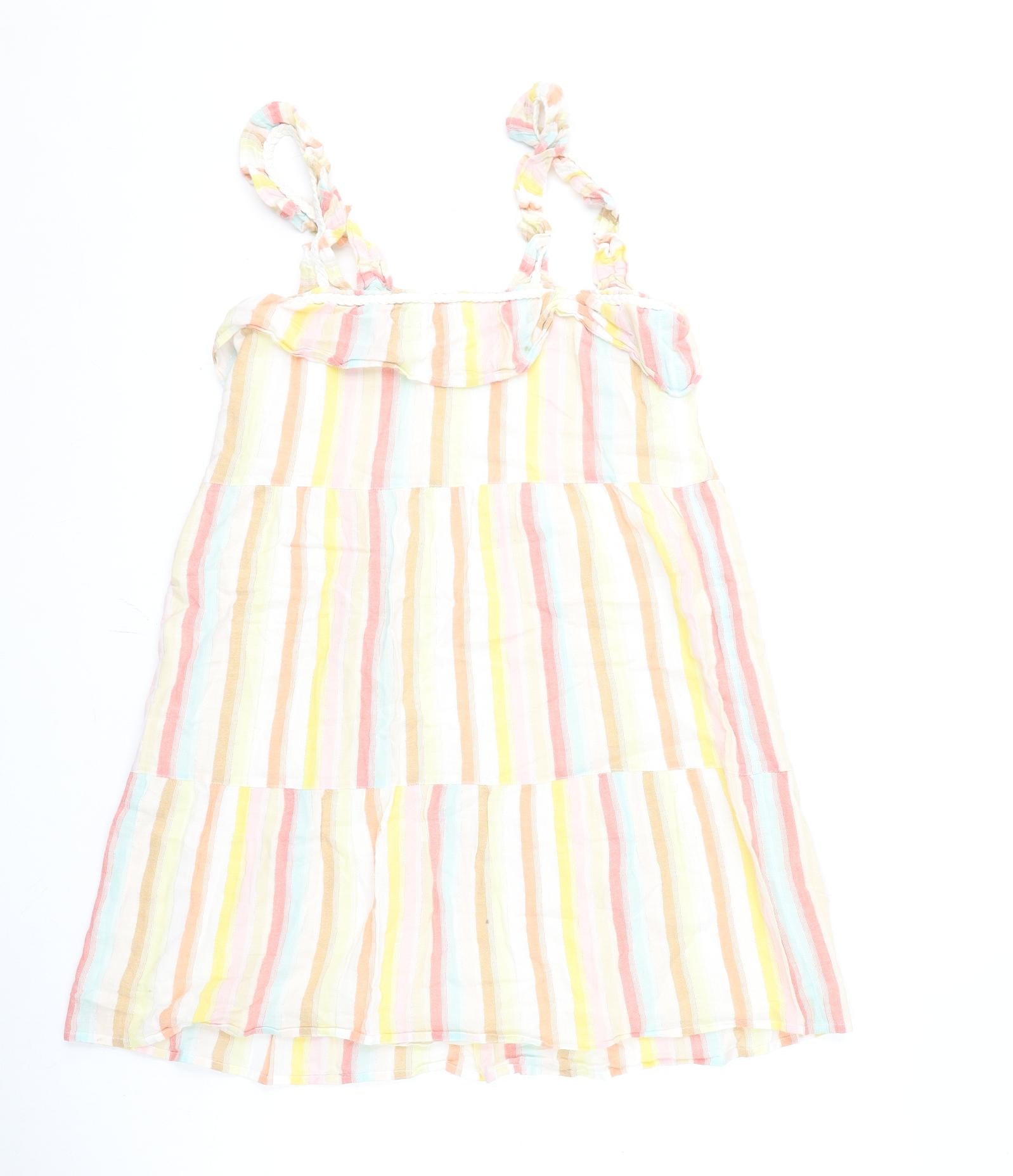 Womens Multicoloured Striped Cotton A-Line Size 10 Square Neck Pullover