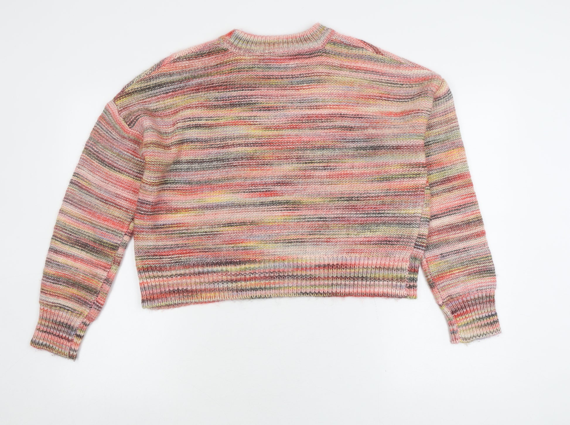 Elevate your wardrobe with this exquisite multicoloured pullover jumper from Sfera, designed for the modern woman who appreciates both comfort and style. Crafted with a luxurious blend of wool and acrylic, this tight-knit jumper promises warmth and softness, making it a perfect choice for cooler autumn and winter days. The vibrant striped pattern brings a splash of colour to your outfit, ensuring you stand out, whether you pair it with jeans for a laid-back look or add it to a more polished ensemble. The long sleeves and relaxed fit add to its casual charm, offering an oversized yet flattering silhouette. This versatile piece features a classic crew neck, ideal for layering with other favourites from your wardrobe. Hand wash care ensures your jumper maintains its quality, wear after wear. Although gently used, it boasts excellent condition with no signs of wear. Perfect for casual outings or cosy evenings at home, this Sfera jumper marries fashion with function effortlessly. Make this vibrant and stylish jumper a staple in your collection today.