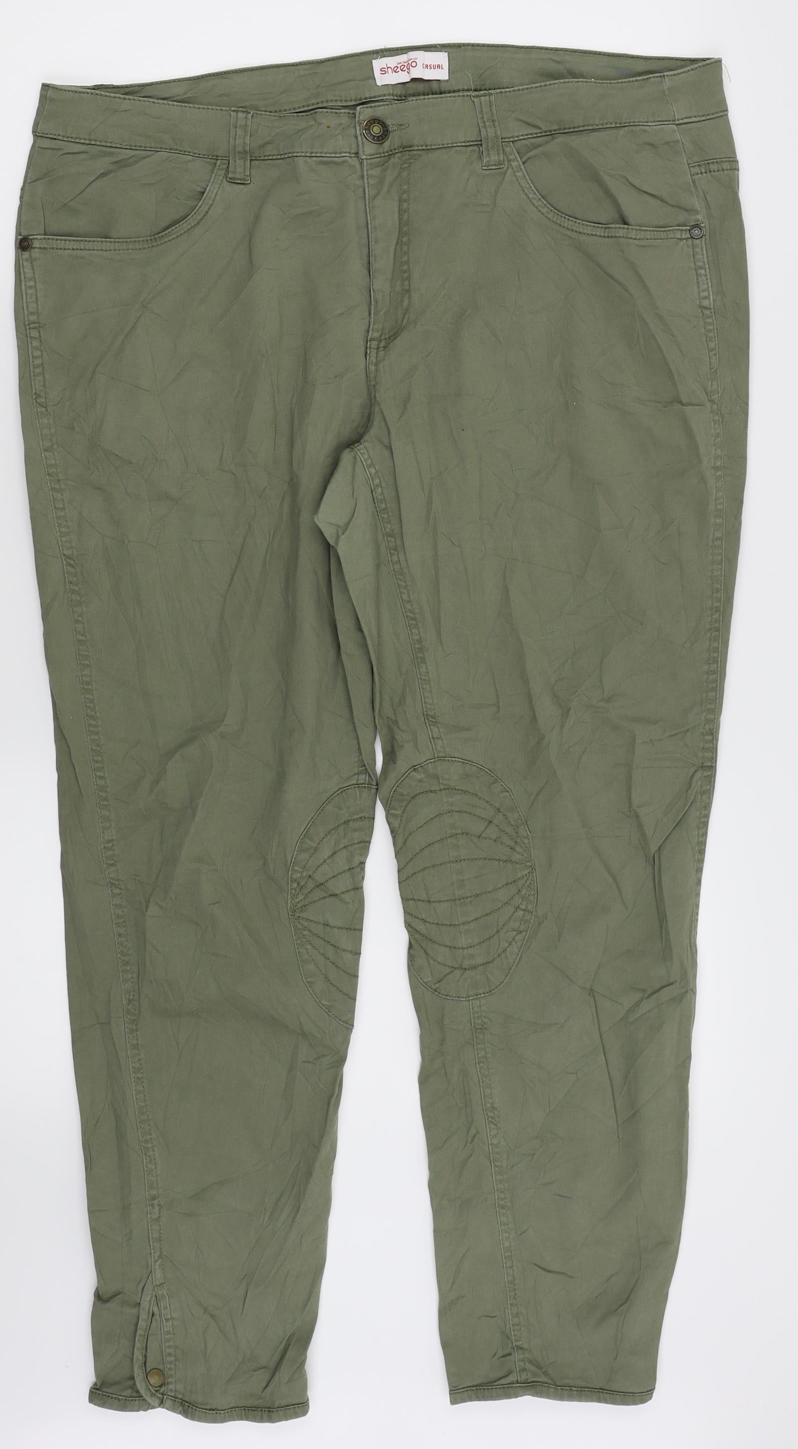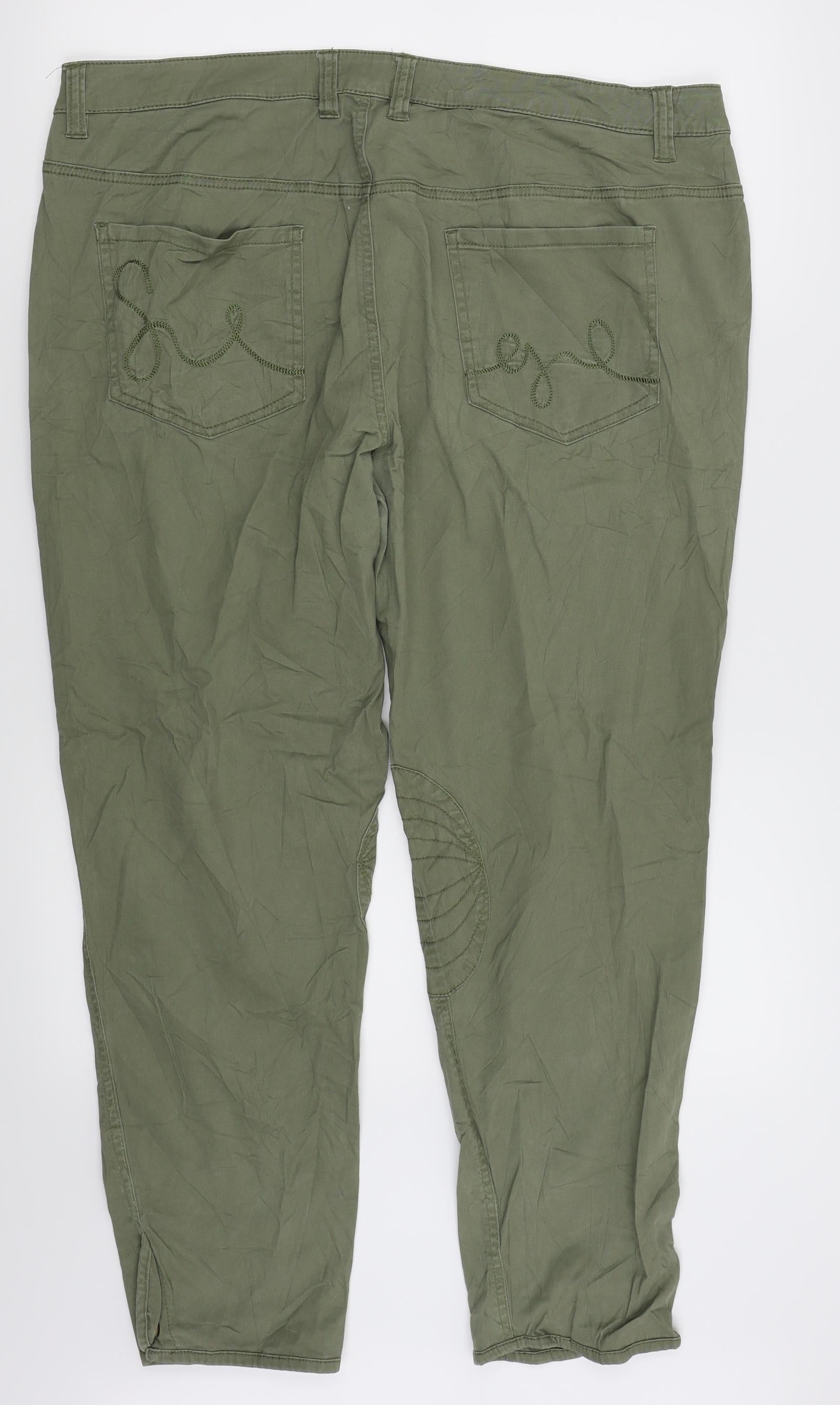 Isle Womens Blue Cotton Cropped Trousers Size 22 Elastic Waist