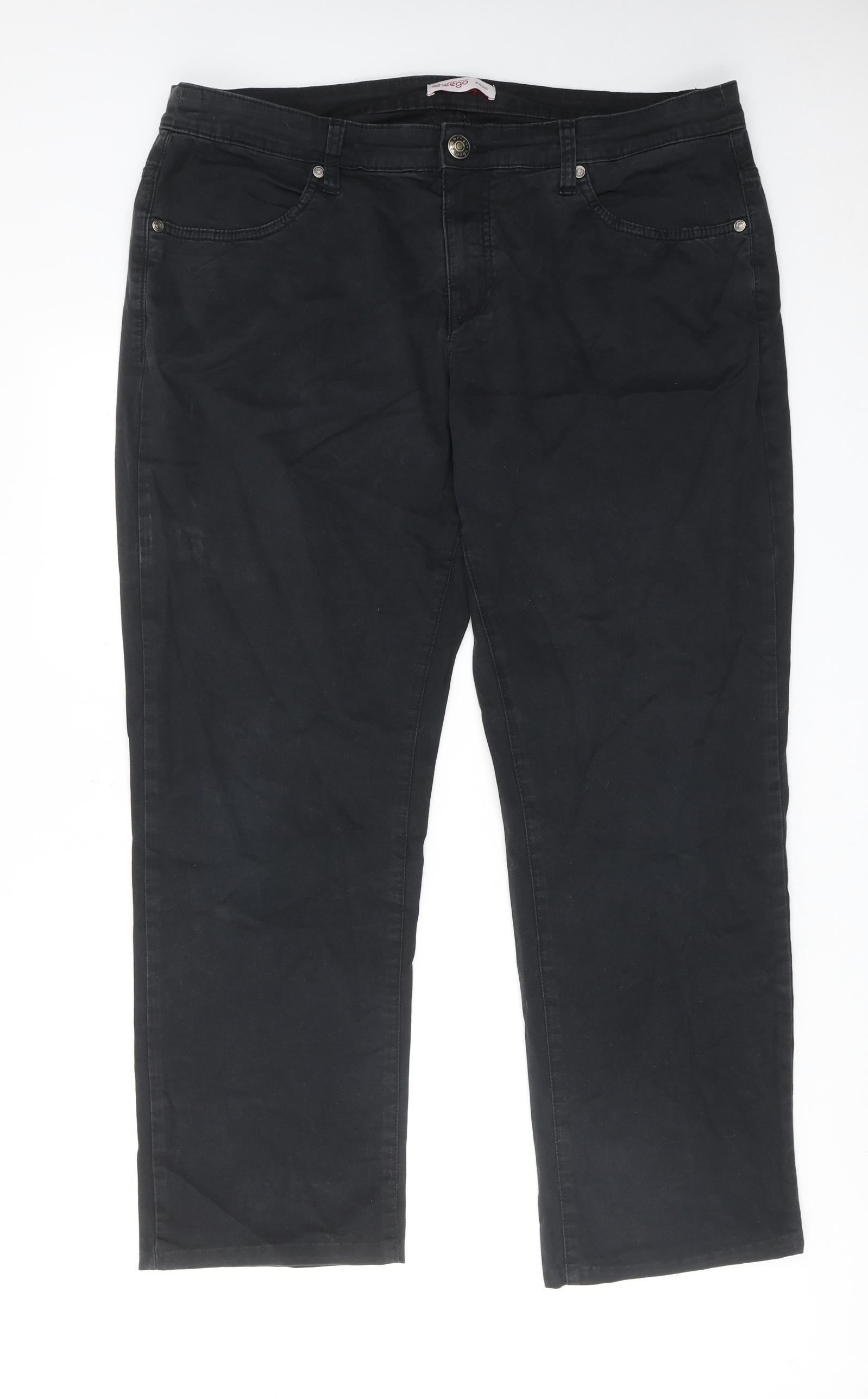 Womens Black Cotton Straight Jeans Size 22 L20 in Regular Zip