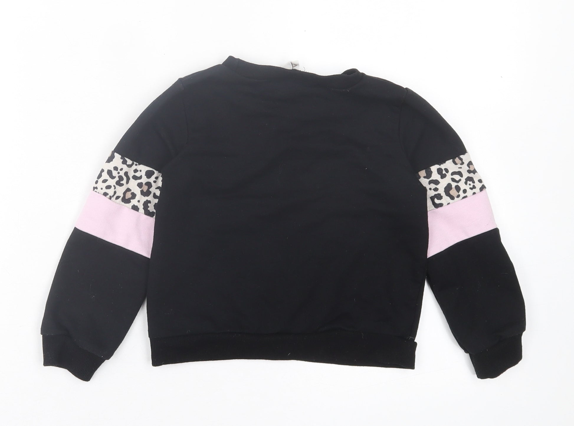 Girls Black Animal Print Cotton Pullover Sweatshirt Size 6 Years Pullover