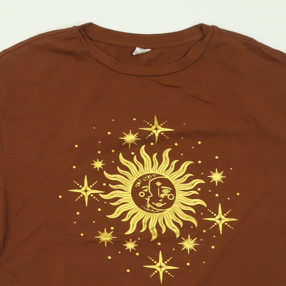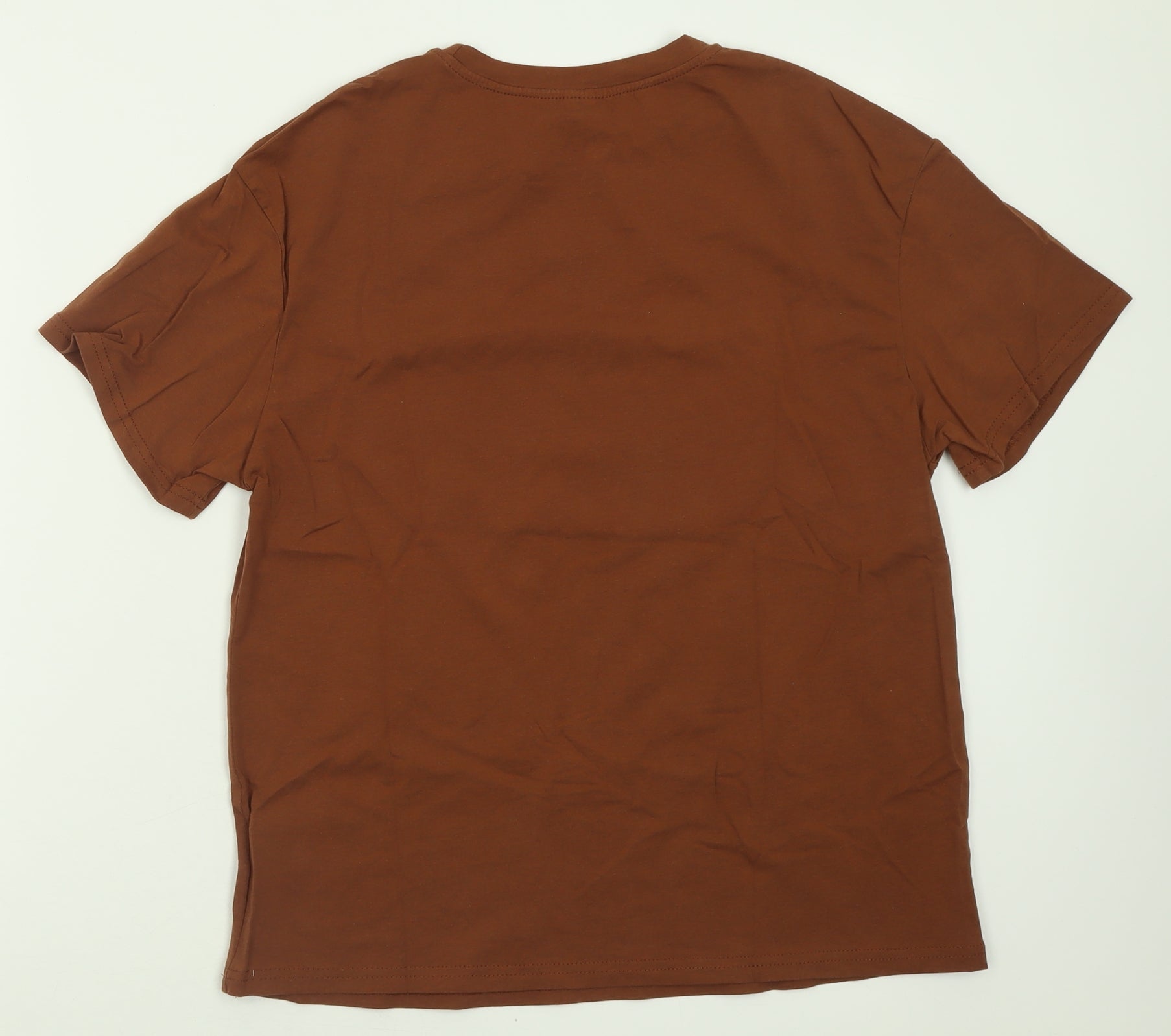 Girls Brown Cotton Basic T-Shirt Size 12-13 Years Crew Neck Pullover